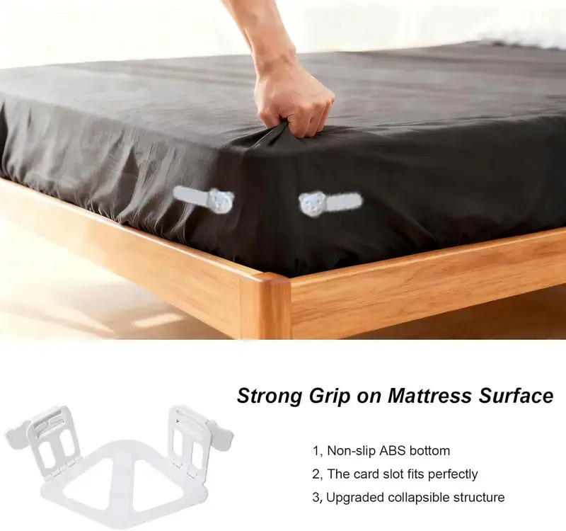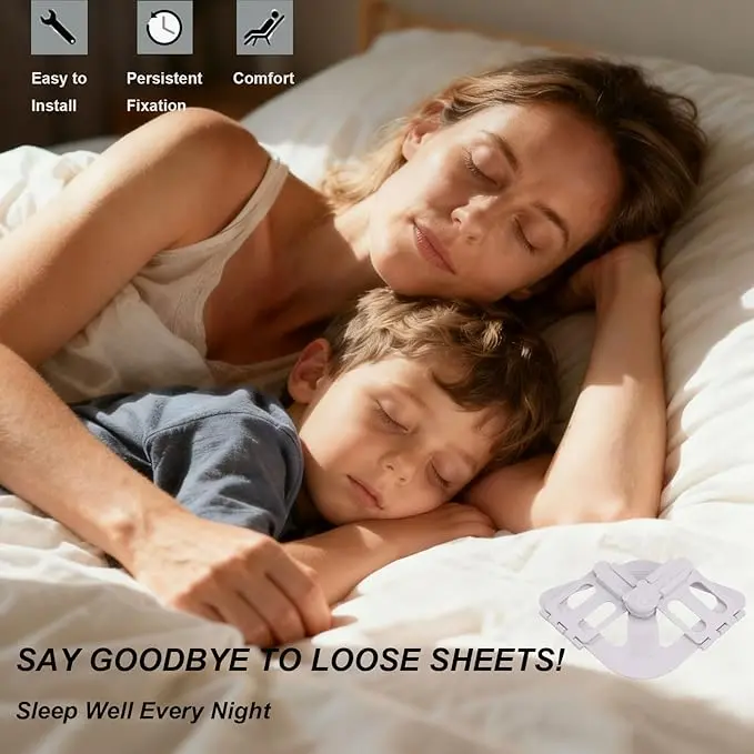 Tired of messy, slipping sheets? Our set-and-forget sheet holder keeps your fitted sheets taut and wrinkle-free all night. Just clip it to each mattress corner, pull your sheet over, and enjoy a perfectly smooth bed—no more tucking or adjusting.