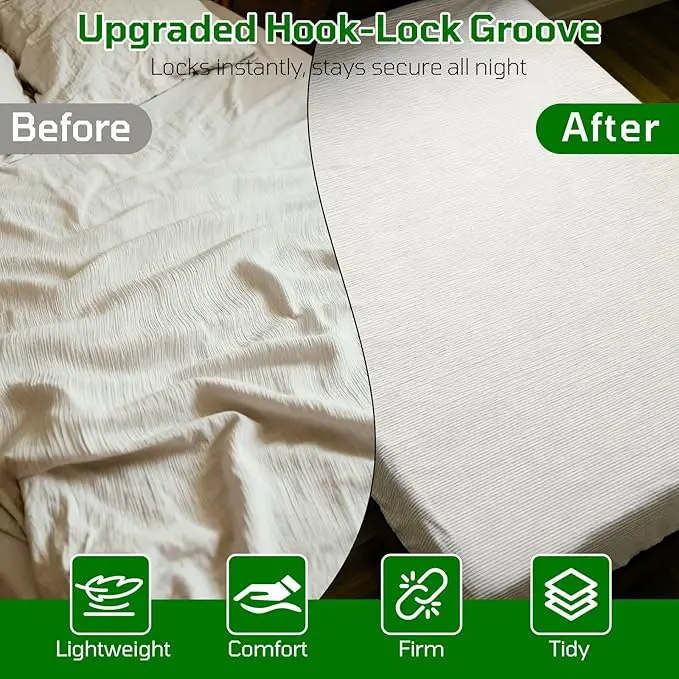 Say goodbye to sheet struggles and cold feet! Our sheet holder locks both your fitted and flat sheets tightly at the back of the bed, so you’ll never wake up to messy, slipping sheets again. Enjoy a smooth, secure bed all night long—no more tucking, adjusting, or cold toes.