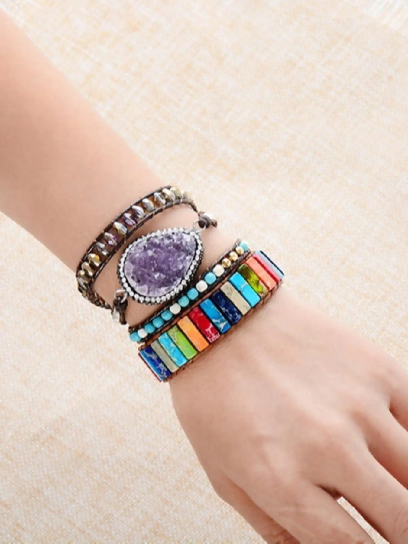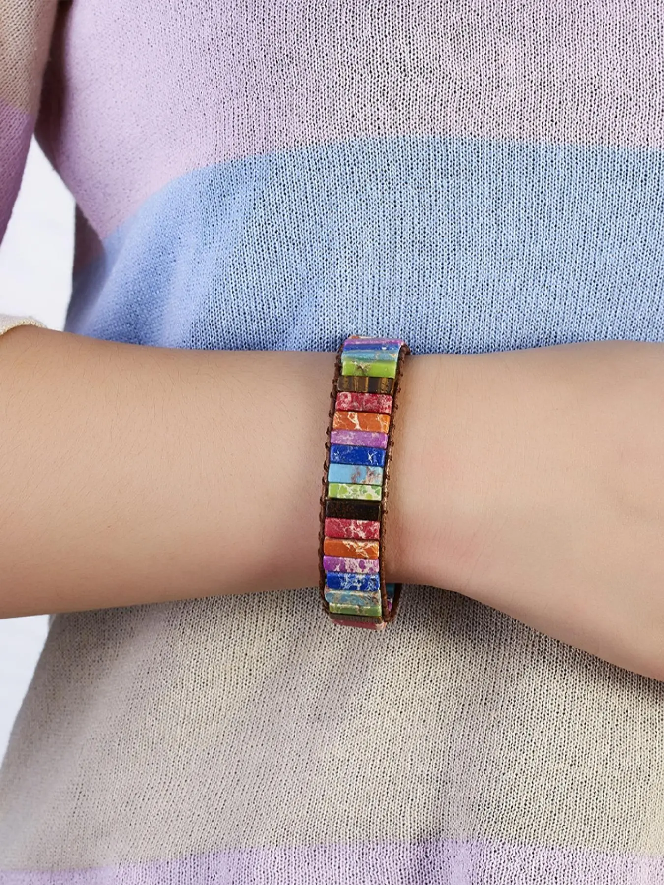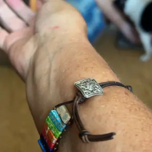 Love my bracelet. Fits perfectly around my wrist. Loving the colors and the crystals that are in it. Adds a good accent to your outfit.