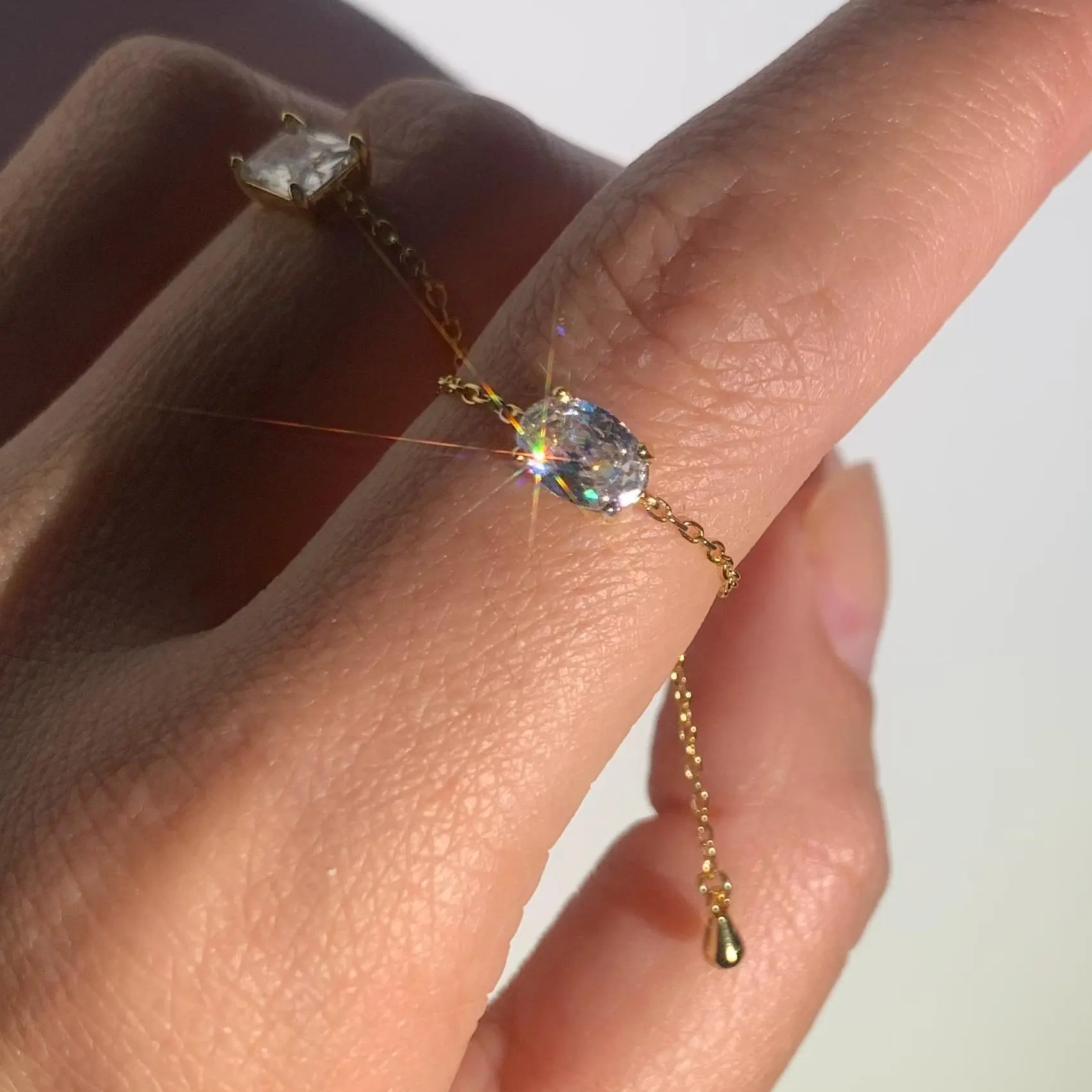 • Adjustable Chain: Ensures a comfortable fit.• Material: 18K real gold plating.• US Ring Size: Available in sizes 3-13.• Rhinestone Design: Adds sparkle and shine.