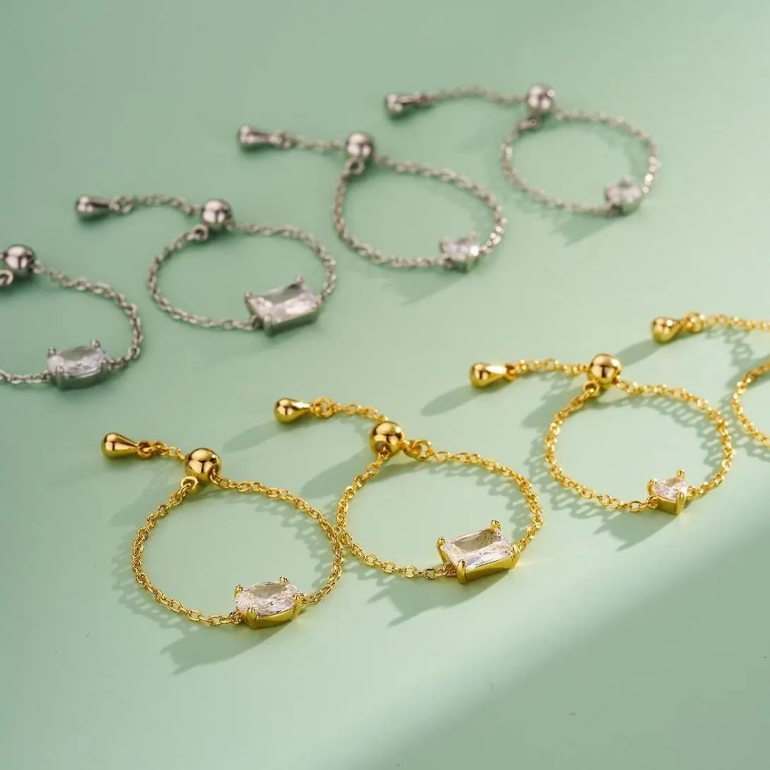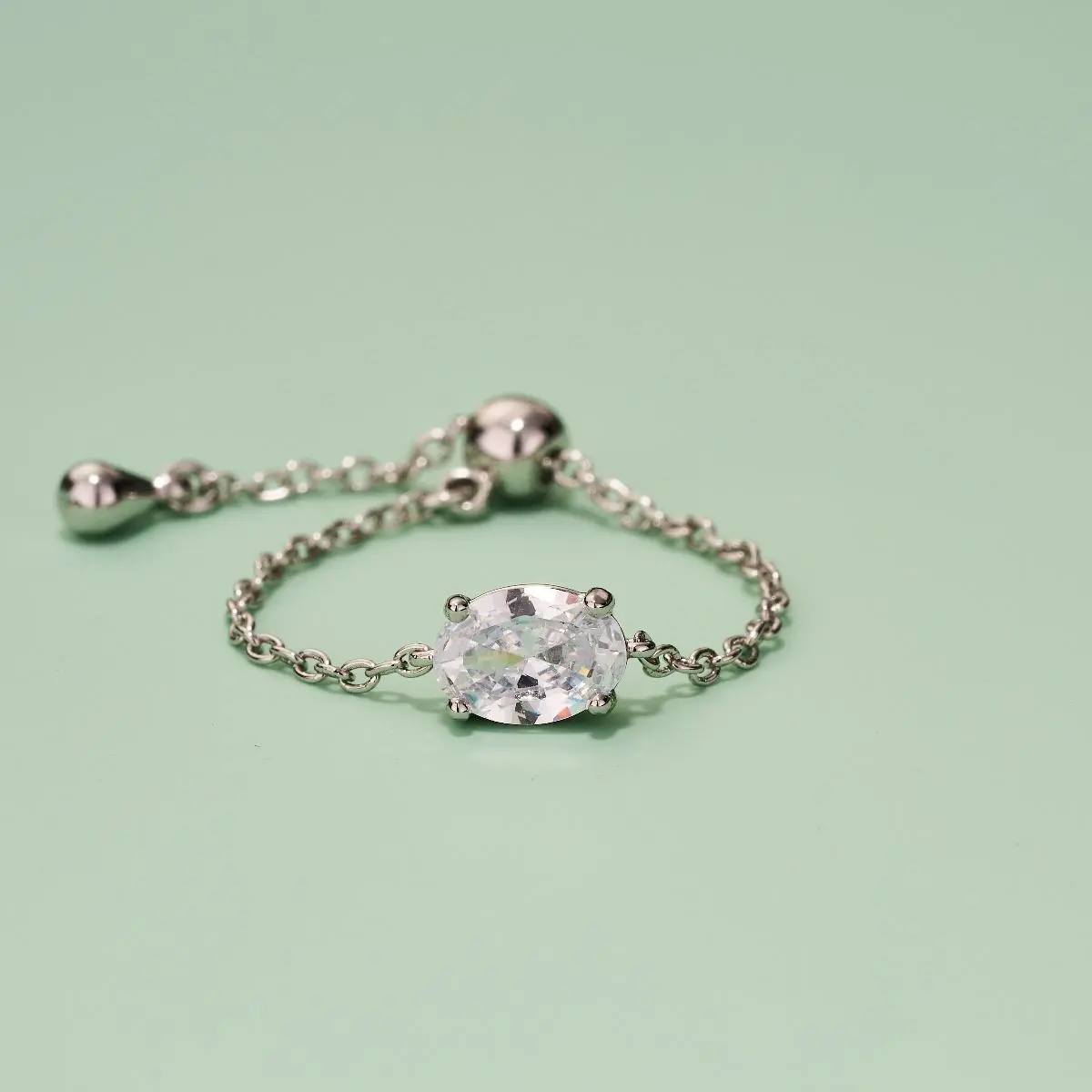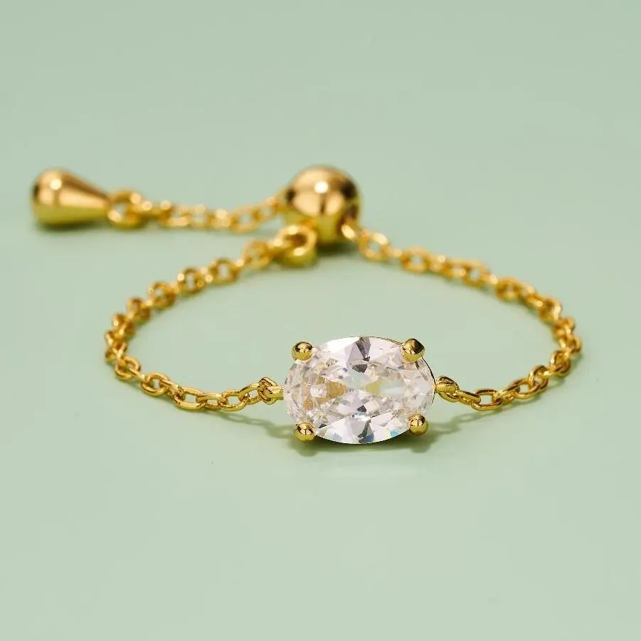 Oufer 14K Gold Plating CZ US Ring Size 3-13 Adjustable Oval  Chain Ring For Women Gift Real Gold Plating