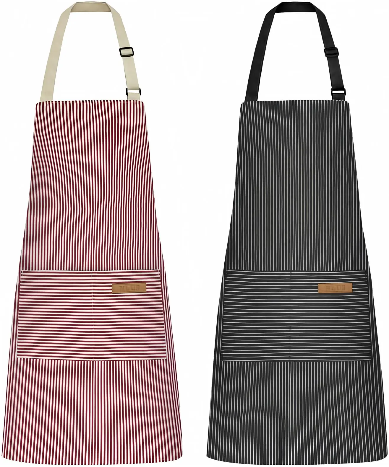 These apron are so cute, comfortable, adjustable strap around the neck, and long strap for your waist. P.s. the the price for two is also very good.