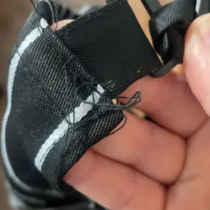 Wad of threads all tangled where neck strap was attached. Cheaply made but you get what you pay for ig