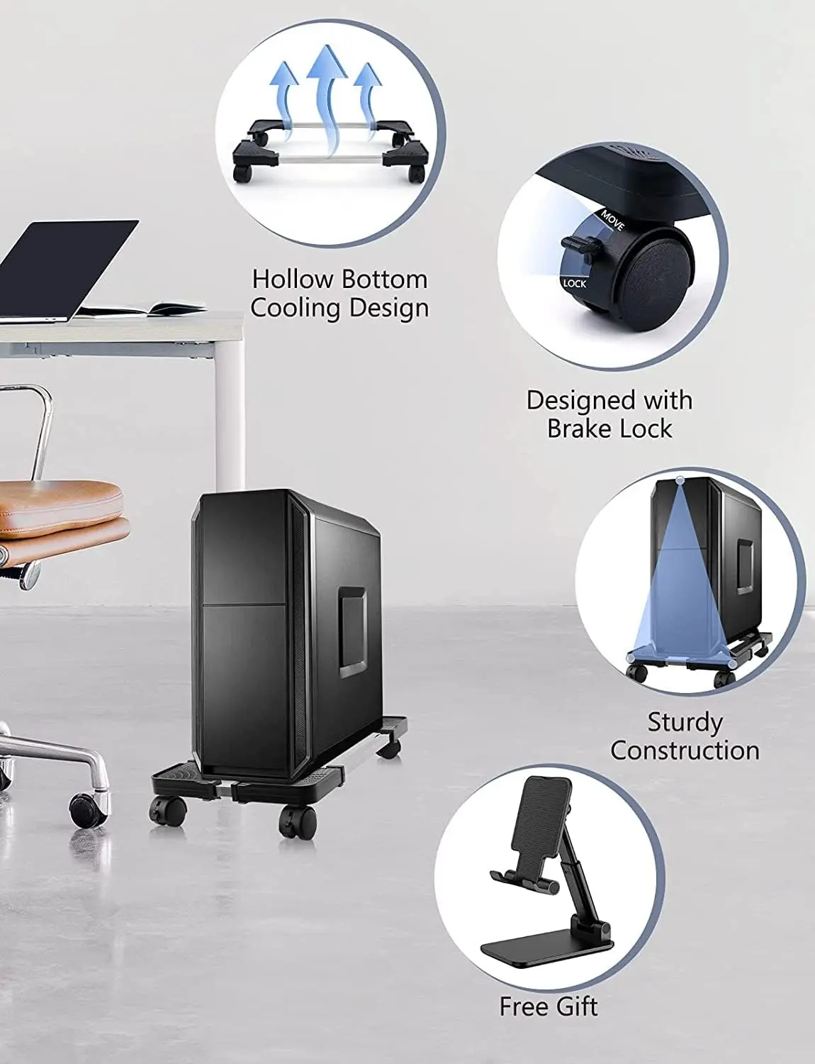 EASY TO ASSEMBLE: The mobile CPU stand provides a efficient way to move and store the computer tower, withstands moderate forces (60 LBS) and allows you to assemble it in the shortest possible time without tools. Heavy-duty design, ABS and stainless steel tube construction make the stand durable, lightweight and compact