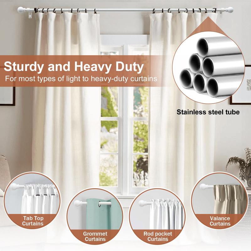 Super Sturdy Steel: Crafted from thickened 0.8mm stainless steel, this curtain rod can support up to 25 pounds without sagging. Its upgraded design increases strength by 200%, ensuring lasting durability.