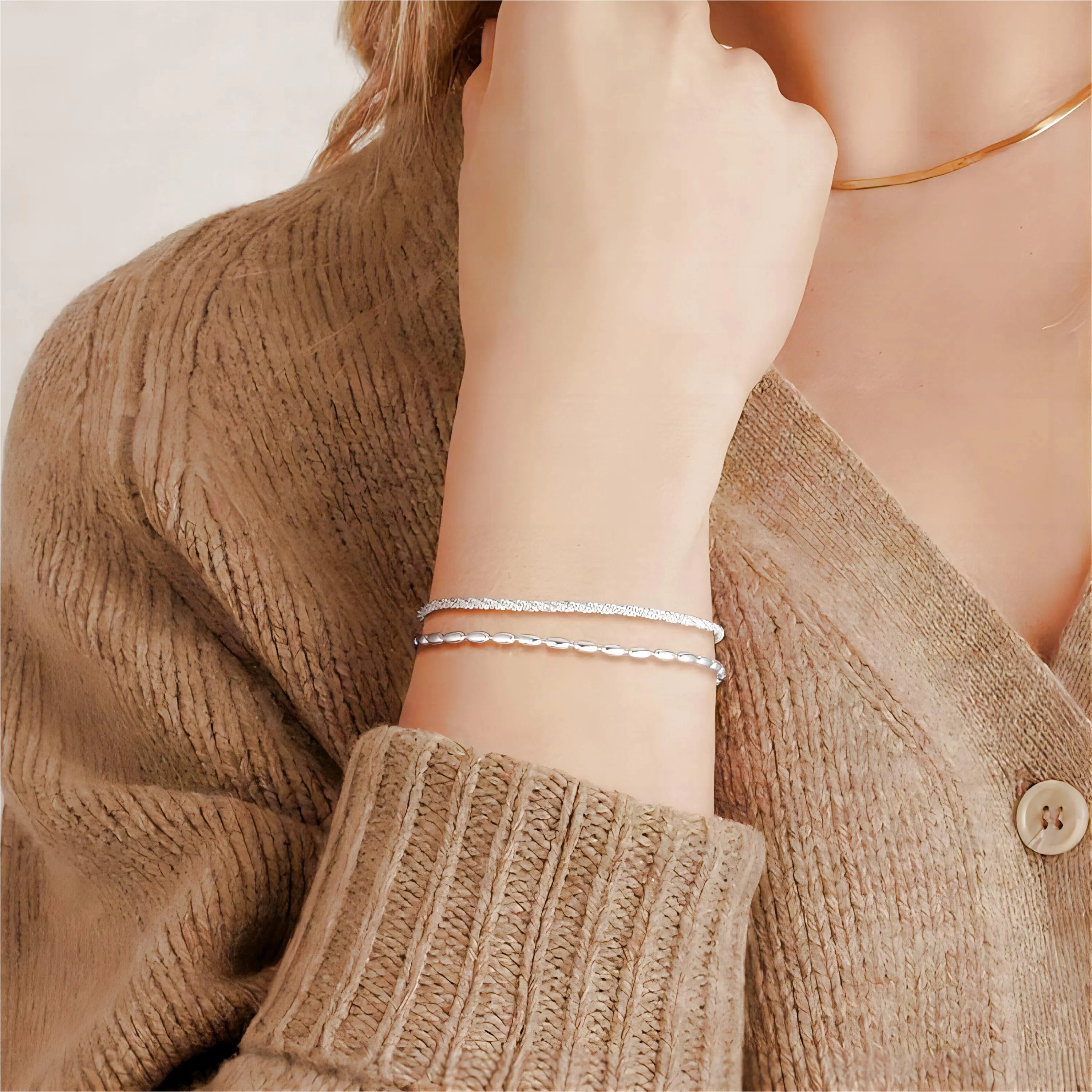 ✨ These bracelets are perfect for women who love a delicate, layered look. The adjustable chain length ensures a comfortable fit. Ideal for those seeking a subtle yet stylish accessory. 🌟