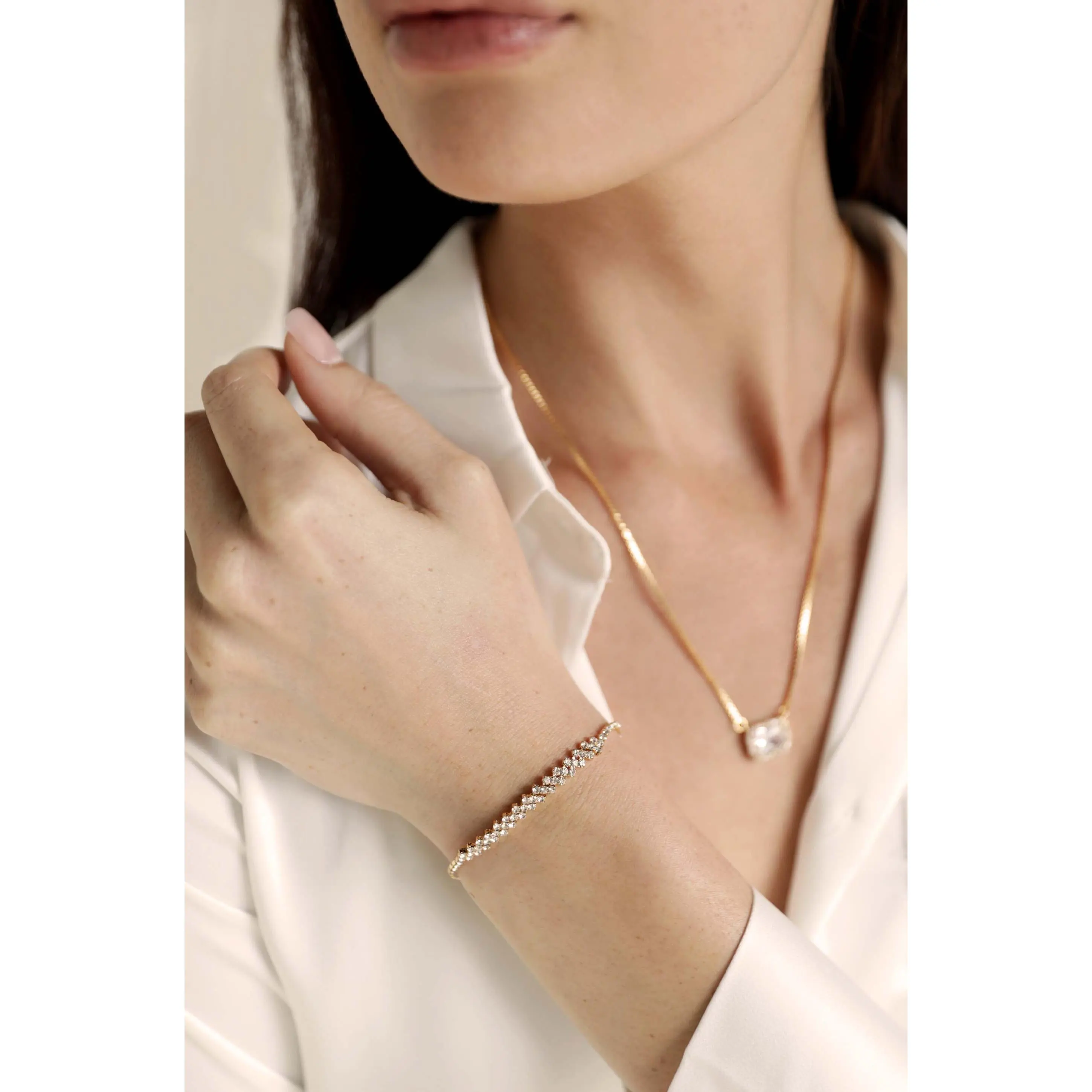 ✨ Elegant Design ✨ This bracelet features a delicate shine, perfect for any occasion. It's crafted from 18kt gold plated brass, ensuring a luxurious look. The glass elements add a touch of sparkle. The adjustable closure allows for a comfortable fit. Ideal for those who love versatile jewelry.