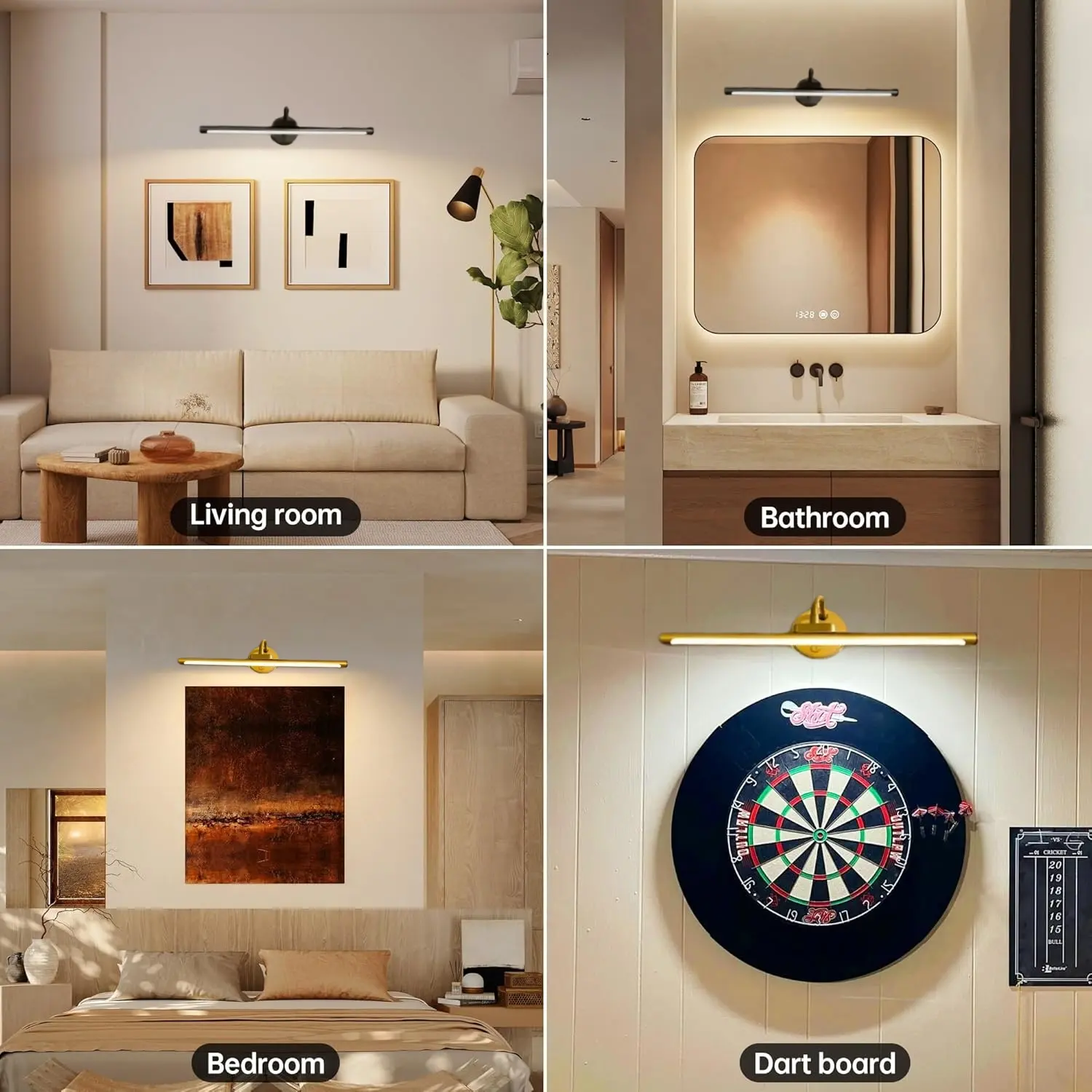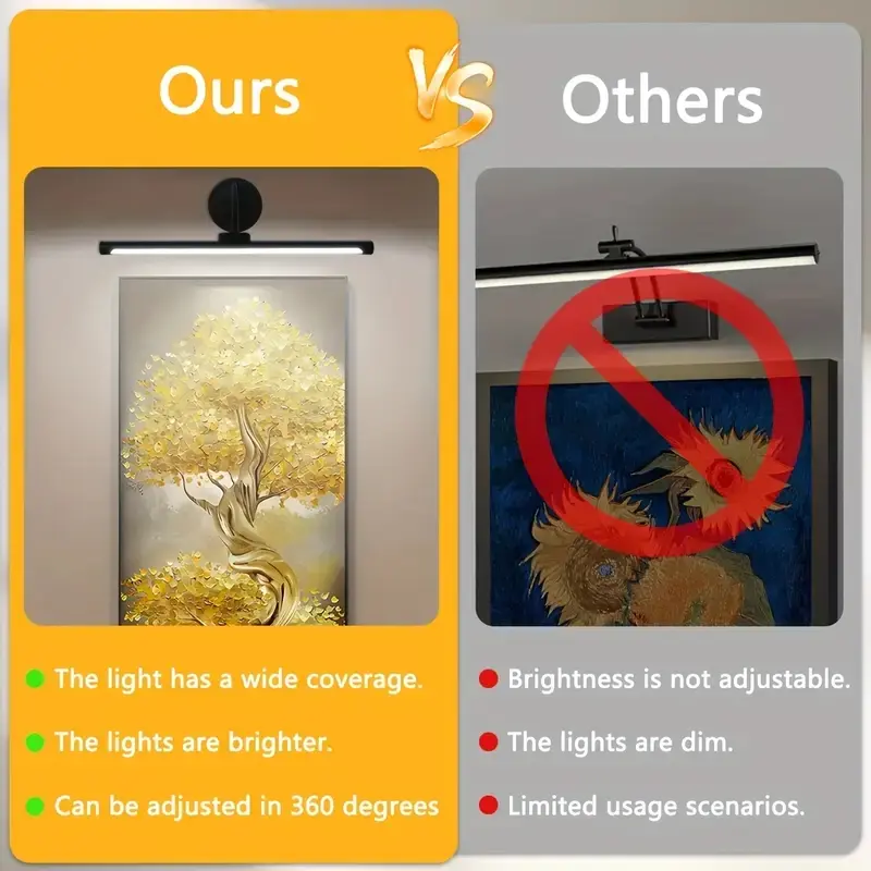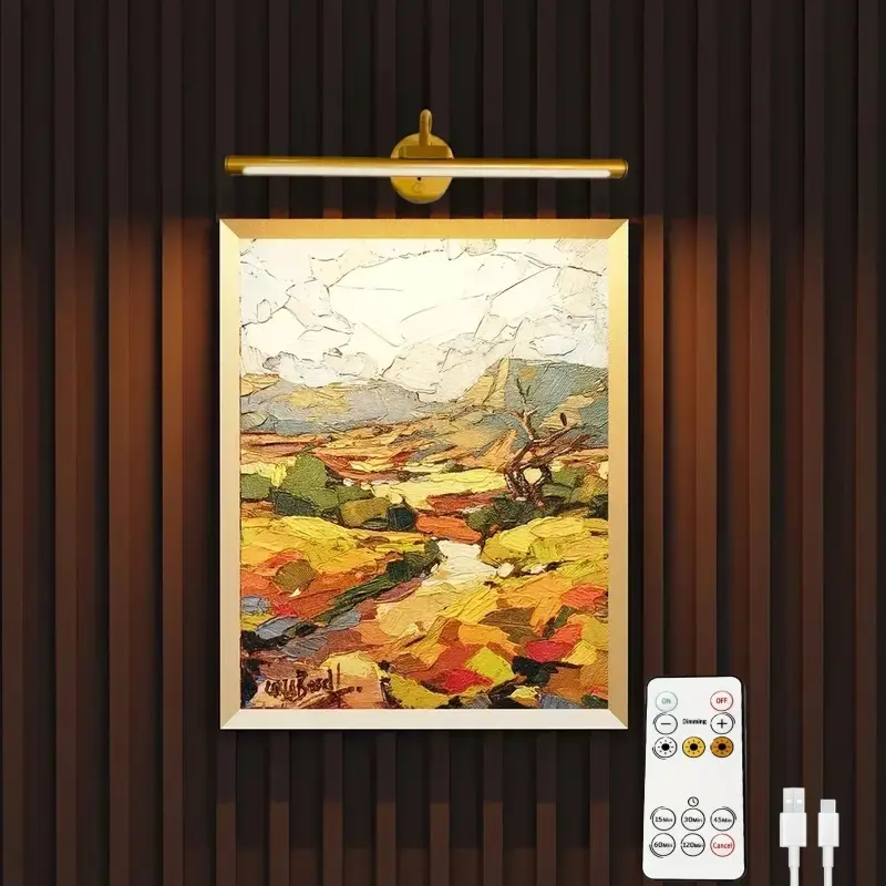 1pc Adjustable Dimmable Picture Light with Remote Control and Timer, Gold, USB Rechargeable Wall Light for Gallery Art, Paintings, Portraits, Dimmable Wall Lamp
