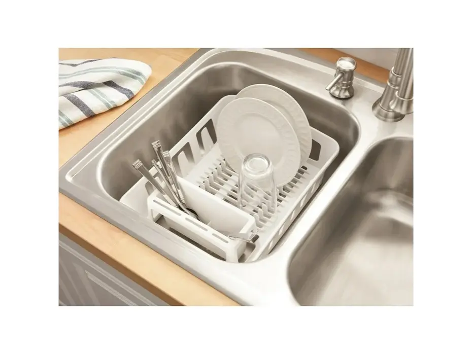 Enhance your dining experience with this space-saving and practical dish rack, designed to keep your countertops tidy and your cutlery organized.