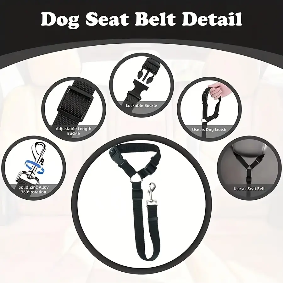 Adjustable Pet Car Safety Harness, Harness Travel, Two-In-One Nylon Lead Belt and Rear Seat Safety Strap, Secure Your Pet While Driving