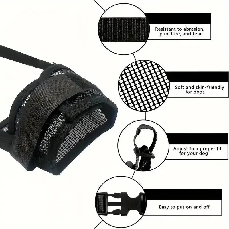 【Breathable material】: Made from breathable polyester, this muzzle promotes airflow while effectively preventing biting and barking.