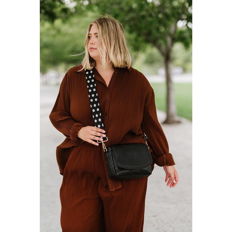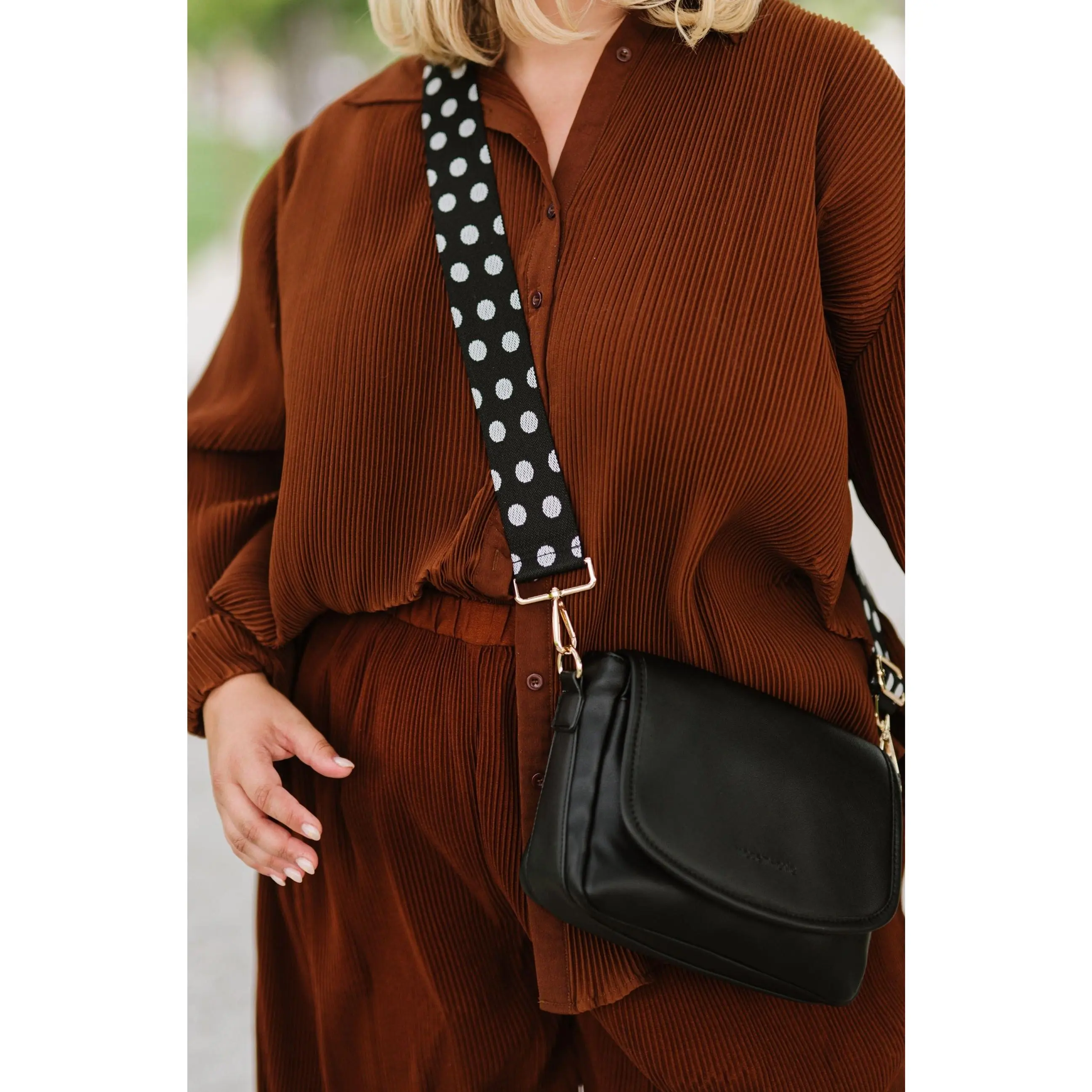 ·Black with white dots is paired with The Signature Crossbody in black
