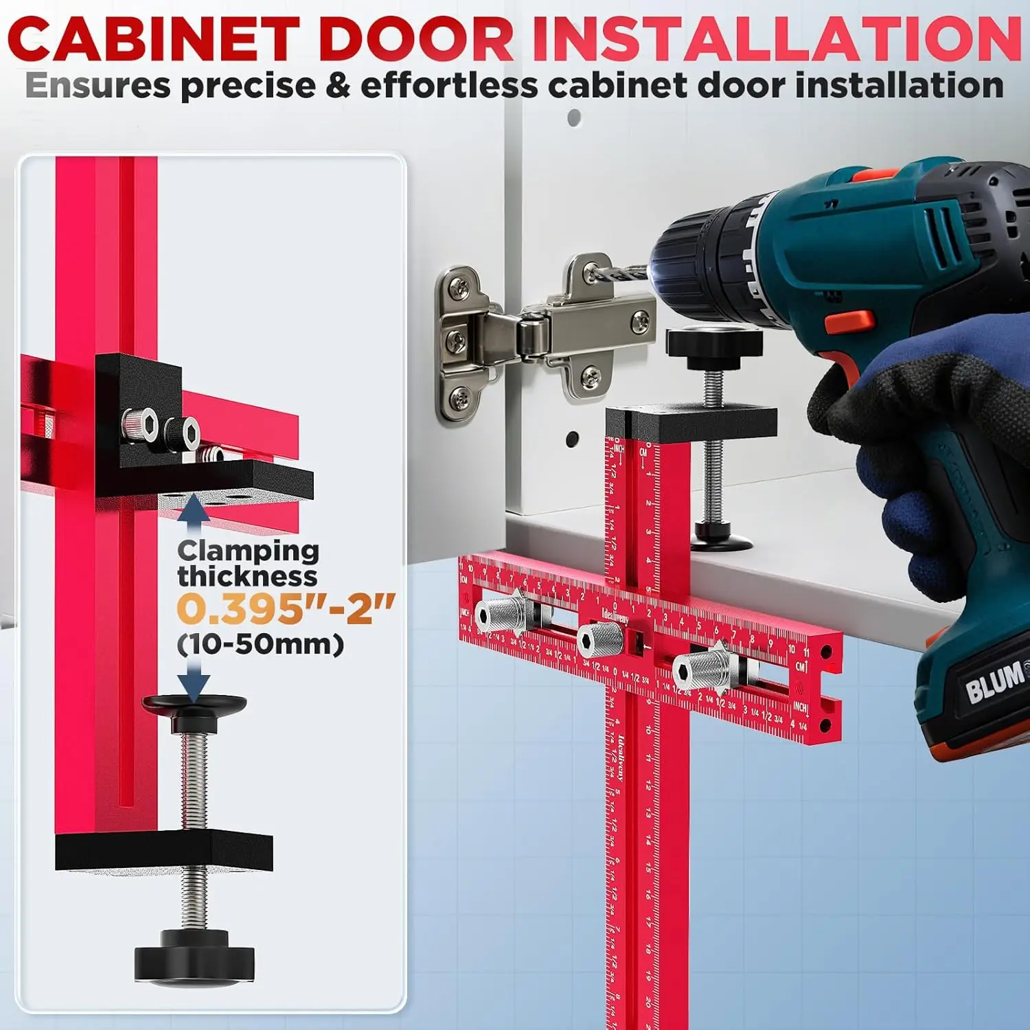 Quick & Foolproof Setup – No complex adjustments needed. Simply clamp, drill, and install—saving you hours of manual measuring. for kitchen cabinet upgrades
