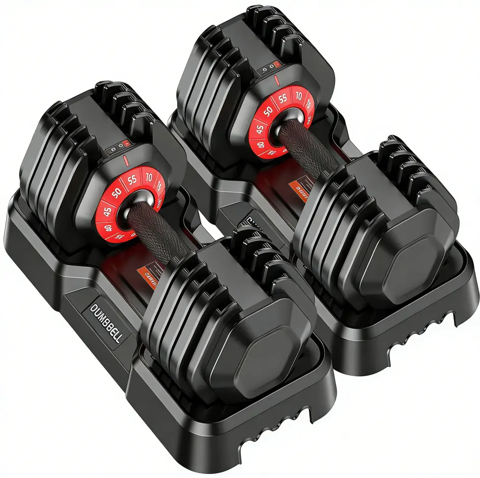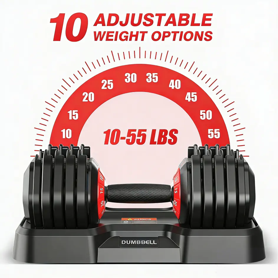 55lb Adjustable Dumbbells, 10 in 1 Weights Dumbbells Set, Fast Adjust Weights Set with Anti-Slip Grip, Space Saving for Home Gym