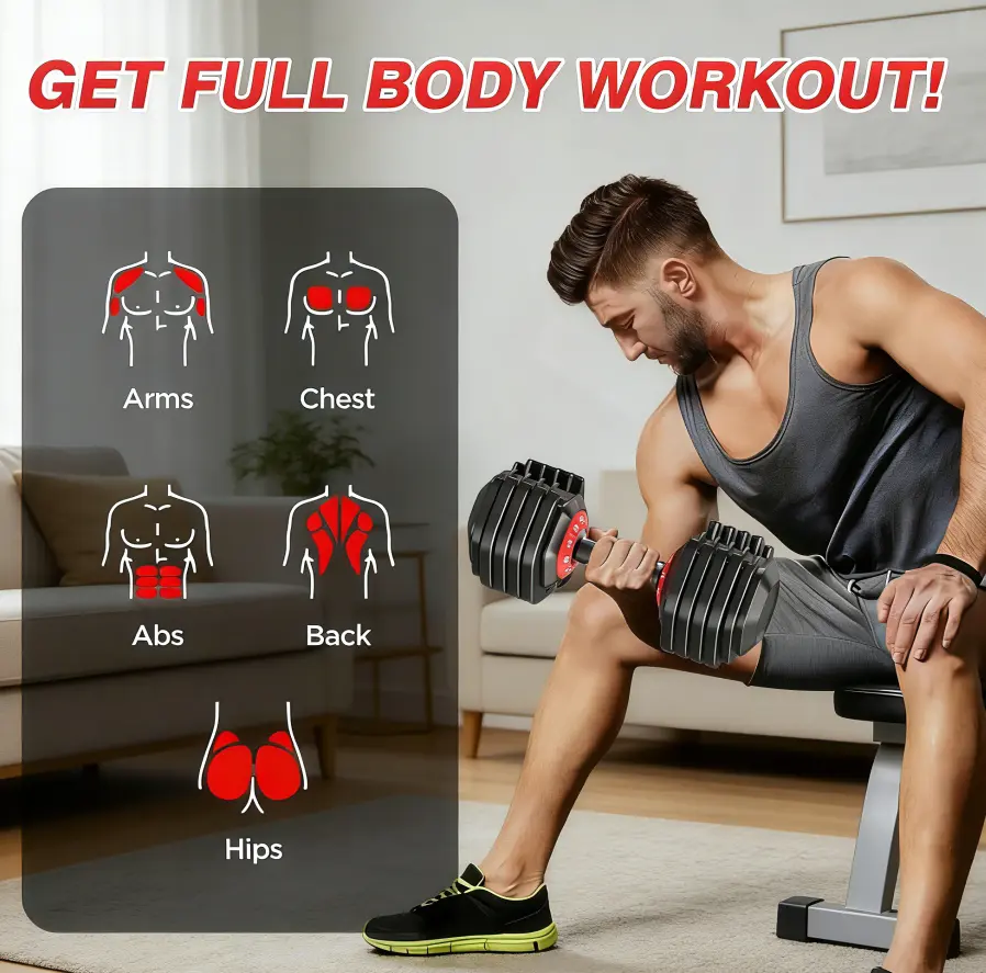 ·【Compact & Space-efficient】Say goodbye to equipment overflow with this adjustable dumbbell set that packs multiple weights into one compact unit, helping you get the most out of your workouts without taking up much room