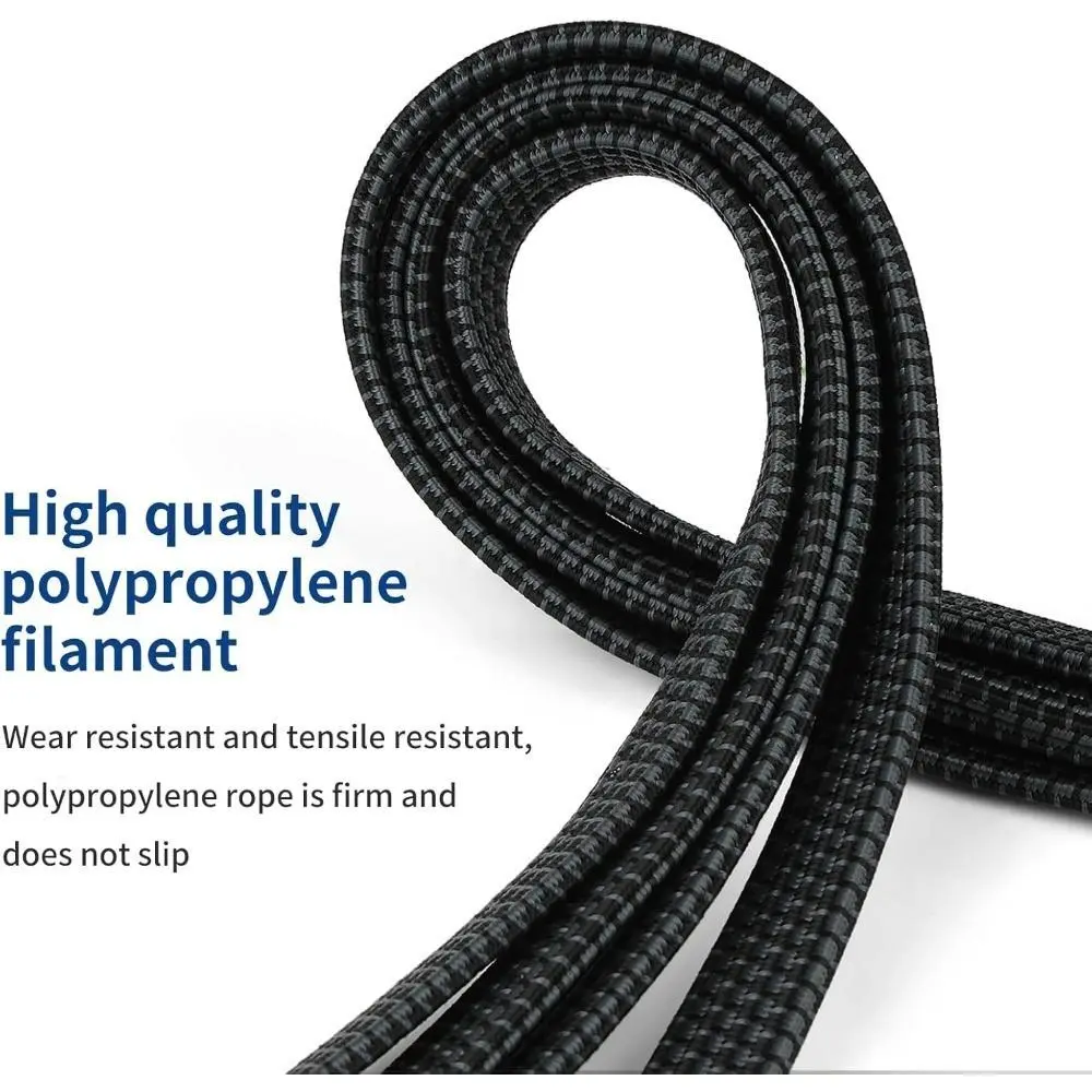 ·Improved durable flexibility: the bungee cords are made of premium latex and Oxford fibre, which makes them much stronger and more elastic than conventional shock cords. It has 1.5 times tensile force and strong rebound force, and the nylon yarn outside has good weather resistance, which makes it can be used for a long time without deformation.
