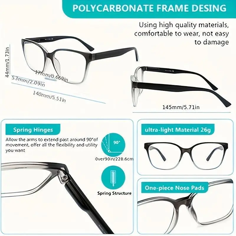 Adjustable Focus Oval Full Frame Glasses, +0.5 to +2.5 Strength, Flexible Optical, Unisex Smart Zoom Casual Glasses, Multi-focus Glasses, Automatic, Frame Black Transparent