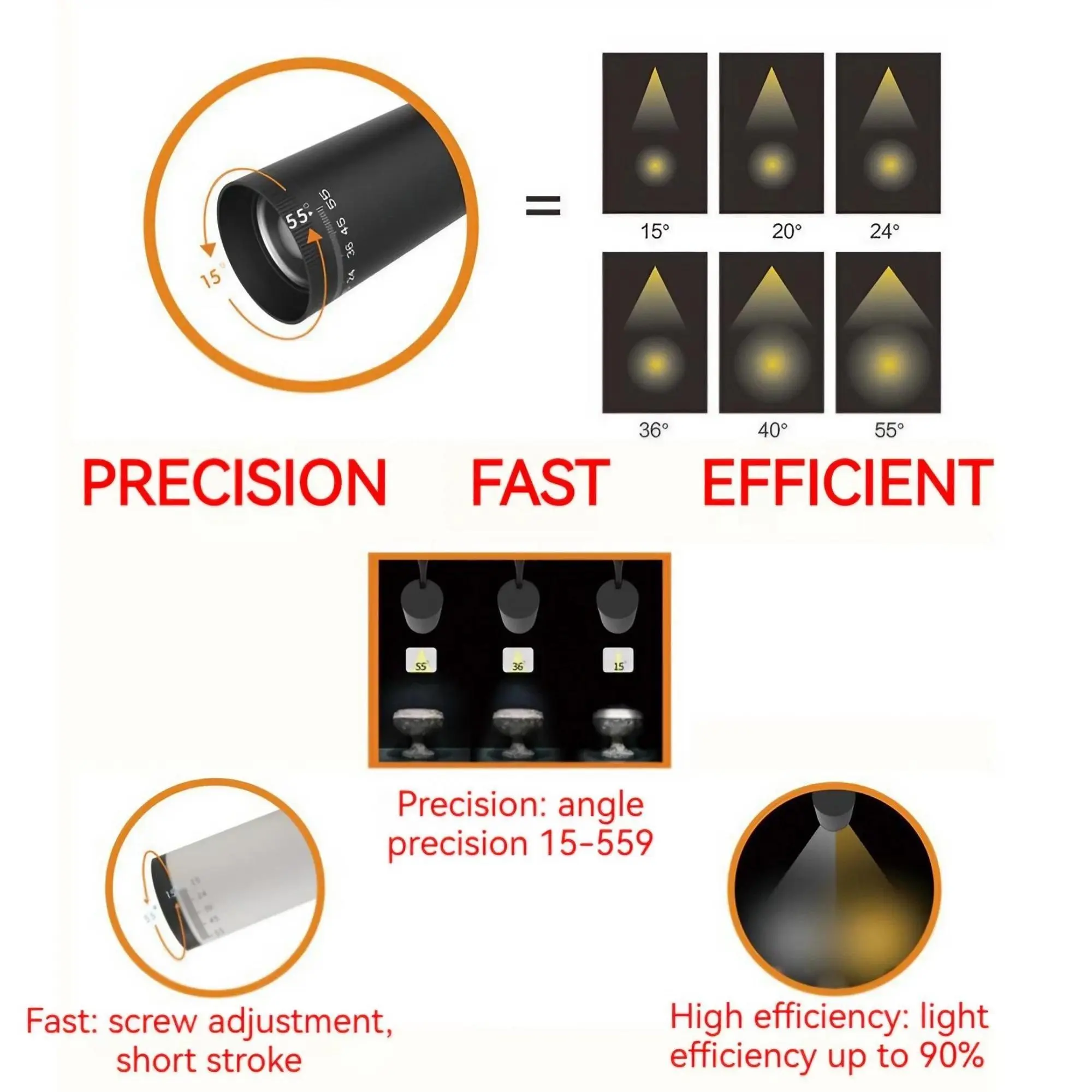 10W Multi-functional Adjustable Focus Track Light, with Adjustable Focus, 360° Rotation, and Adjustable Angle - A Perfect Lighting Solution for Indoor Spaces, Ideal for Home, Office, Commercial Areas, and More