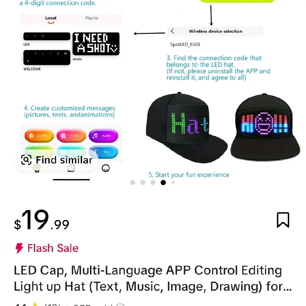 ·Full-Color LED Display: Featuring 16*32 full-color LED beads, this hat displays vibrant patterns, GIFs, text, and images. Customize your display through the app to show your unique style.