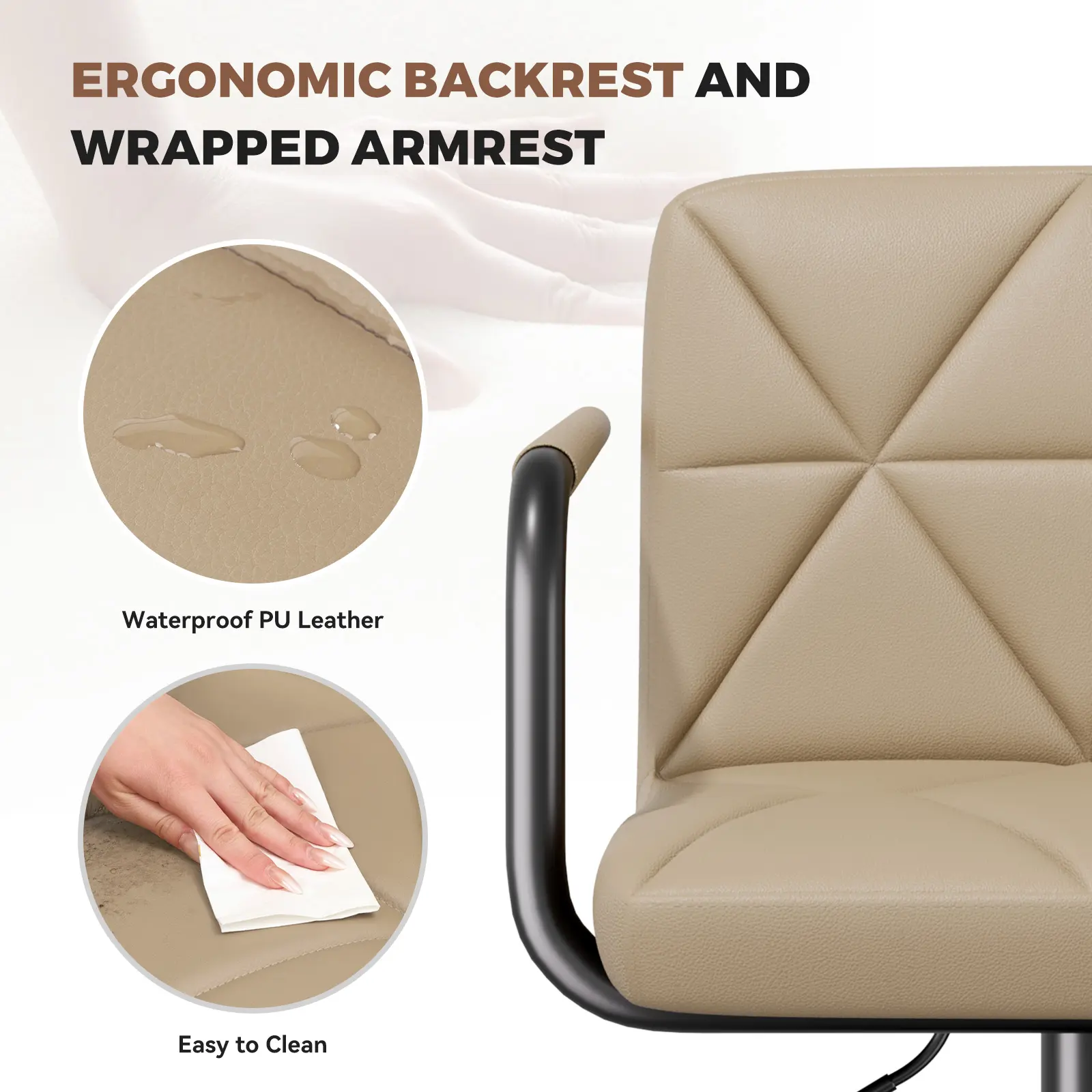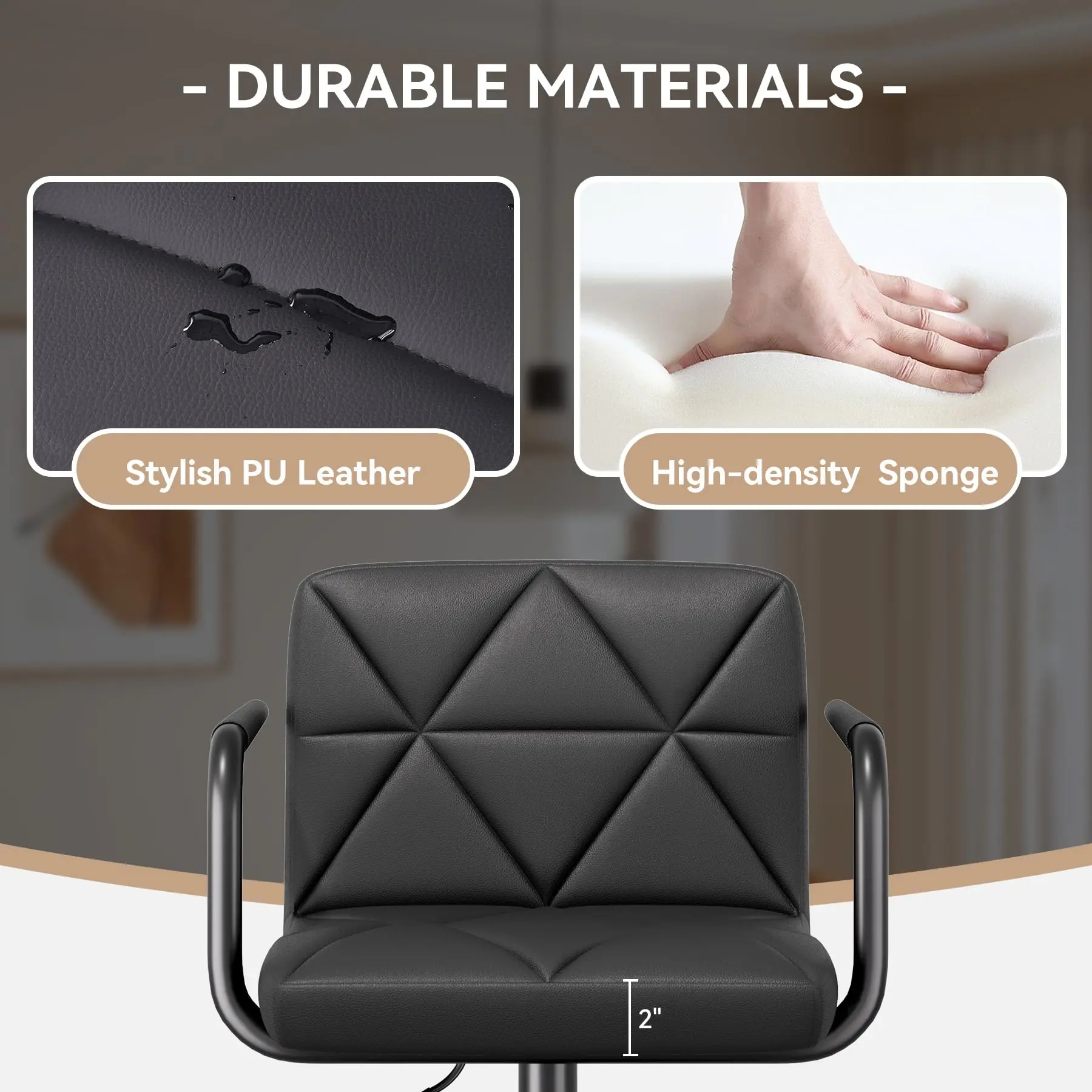 ·【Swivel & Adjustable】The seat height can be adjusted from 25.5-34.5 inches , which is free and flexible, suitable for different table heights and meeting different life needs. The 360° swivel seat, rotating smoothly and silently, provides more convenience and helps you to easily access items and sit in a comfortable position.