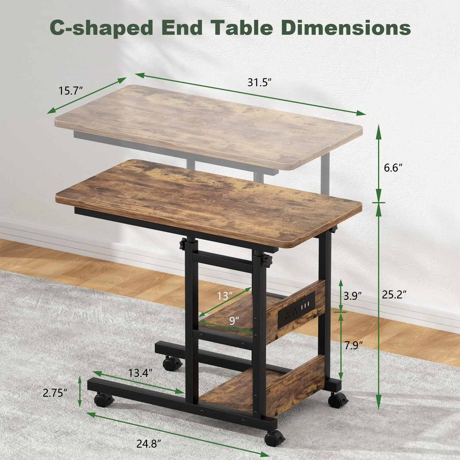 ·【Height Adjustable Side Table】Our c shaped side table with charging station can be adjusted height from 25.2-31.8 inches to fits your needs for desk height when you work and relax, it fit most bed and sofa, protect you from headache, neck pain.