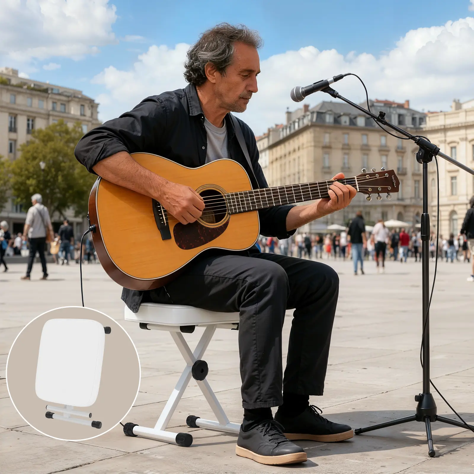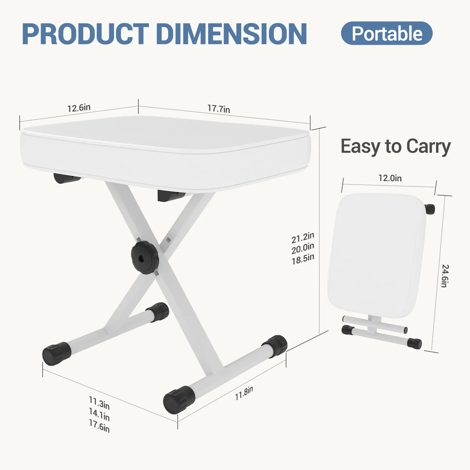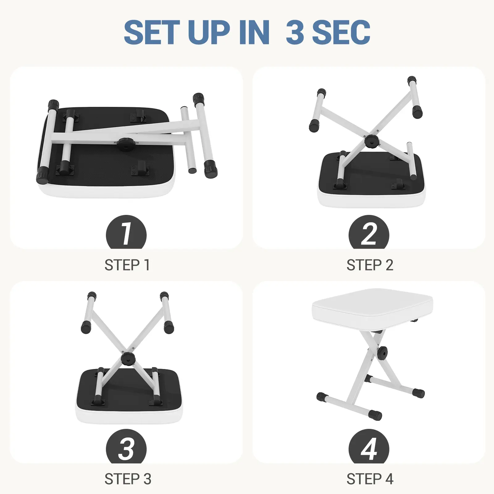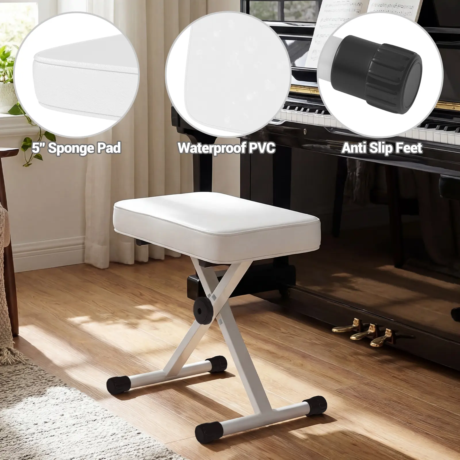 ·【Stable, Non‑Slip Design 】An X‑shaped steel frame with rubber‑tipped feet keeps the stool securely in place while you play.