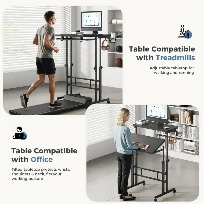 This versatile desk can be used as a standing desk, rolling laptop desk, study table, small side table, presentation podium, or mobile workstation. The 21.3" leg clearance fits most walking pads, allowing you to work while moving.