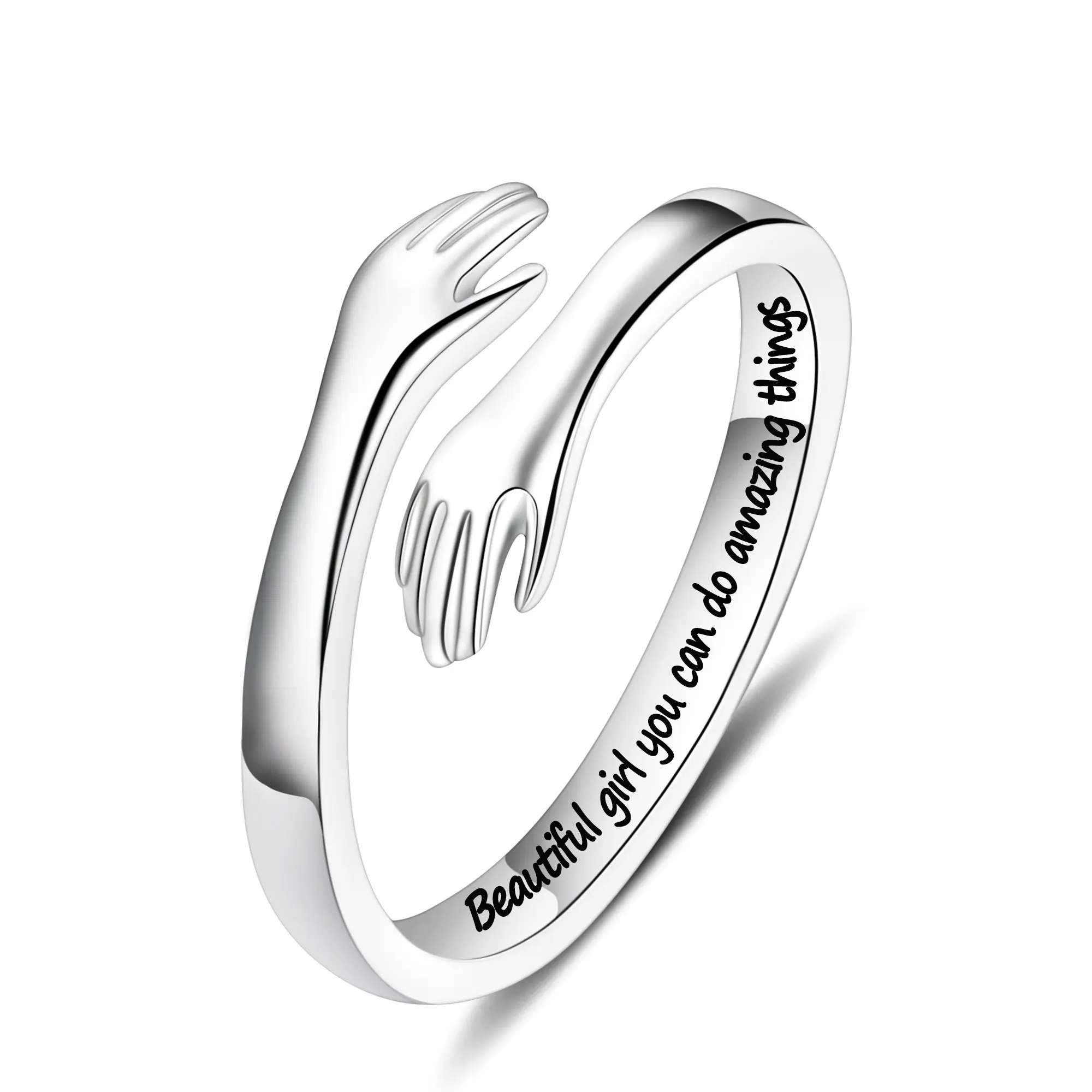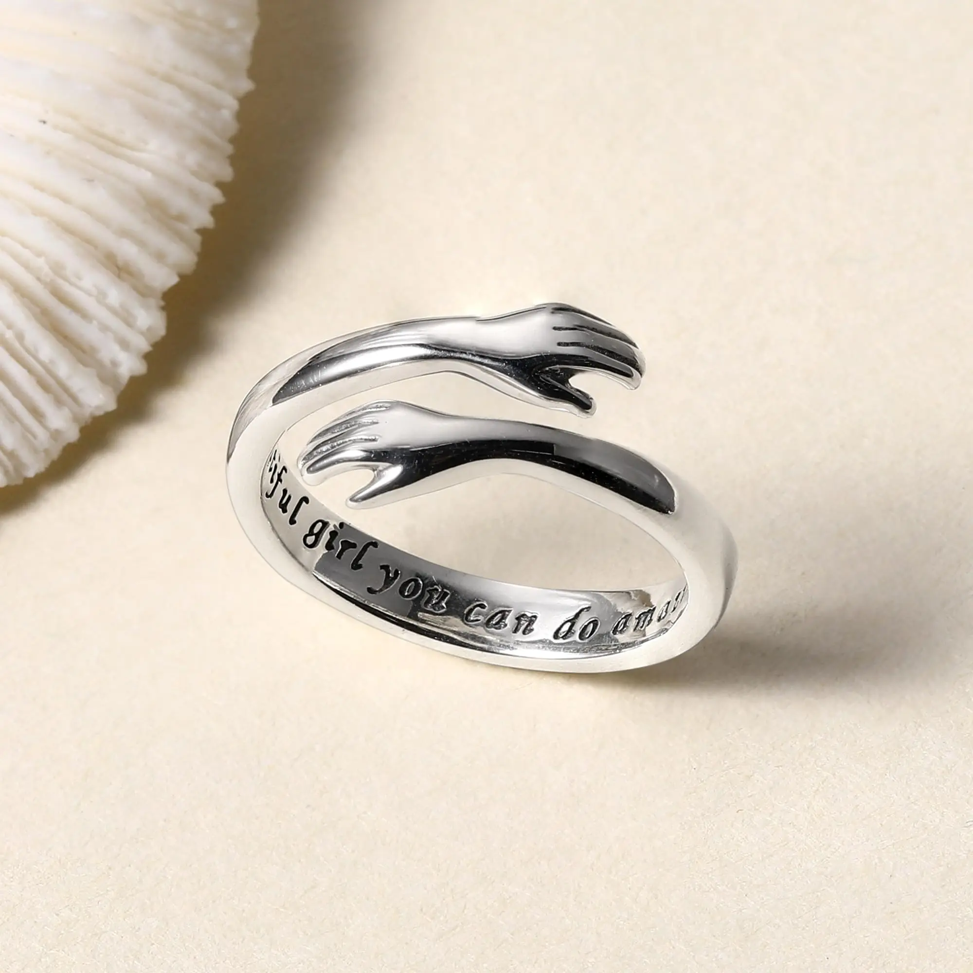 ·A hug is a timeless symbol of comfort, encouragement, love, and protection. This hug ring is engraved with the heartfelt words “Beautiful girl, you can do amazing things”, giving it a unique and empowering meaning. Wherever life takes you, this ring is a reminder that you are never alone — just like this eternal hug encircling your finger.