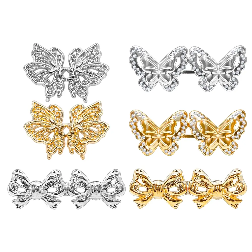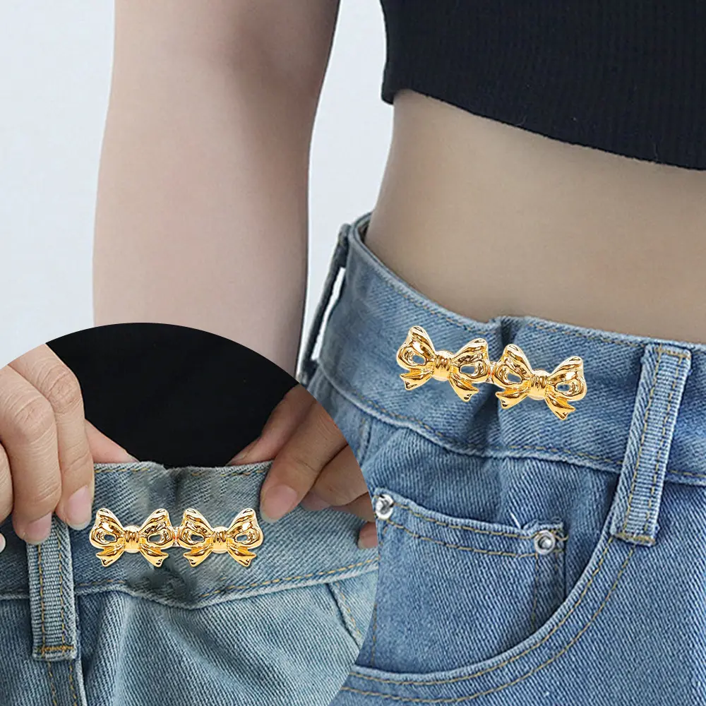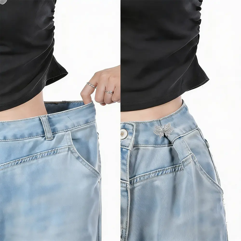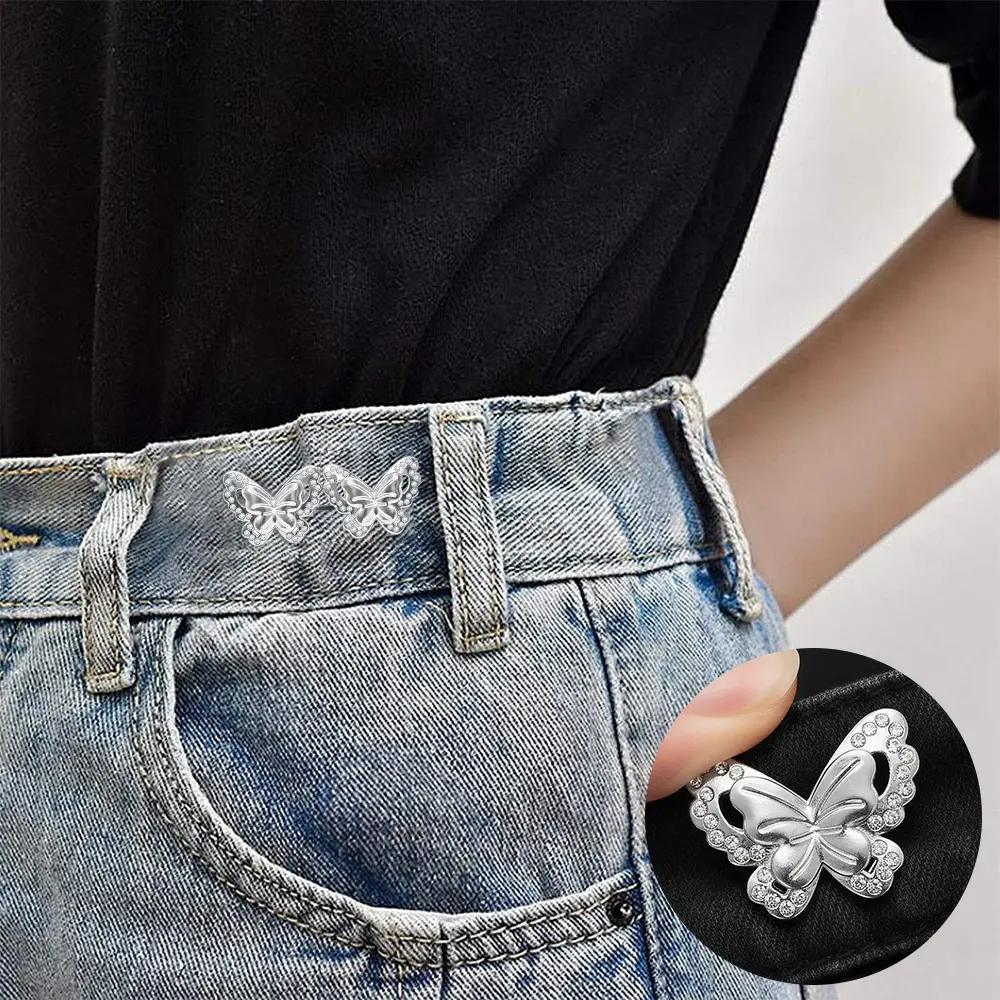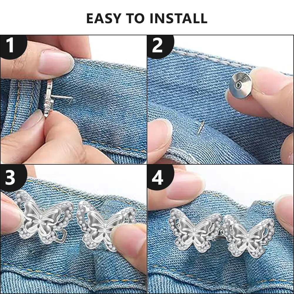 6Sets Pant Waist Tightener Butterfly Jeans Pins Buttons for Loose Jeans, Adjustable & Detachable Pants Waist Clips for Waist, No Sew Button for Women Jeans Pants Skirt(Gift 2 sewn flower buttons)