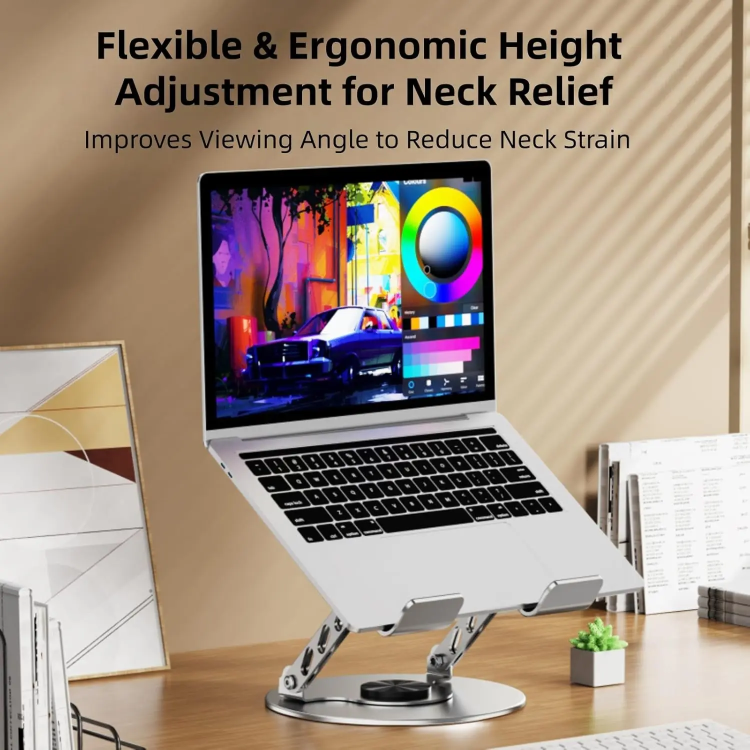 • 3.The laptop stand features an elevating , allowing optimal viewing angles and reducing neck strain during prolonged use.
