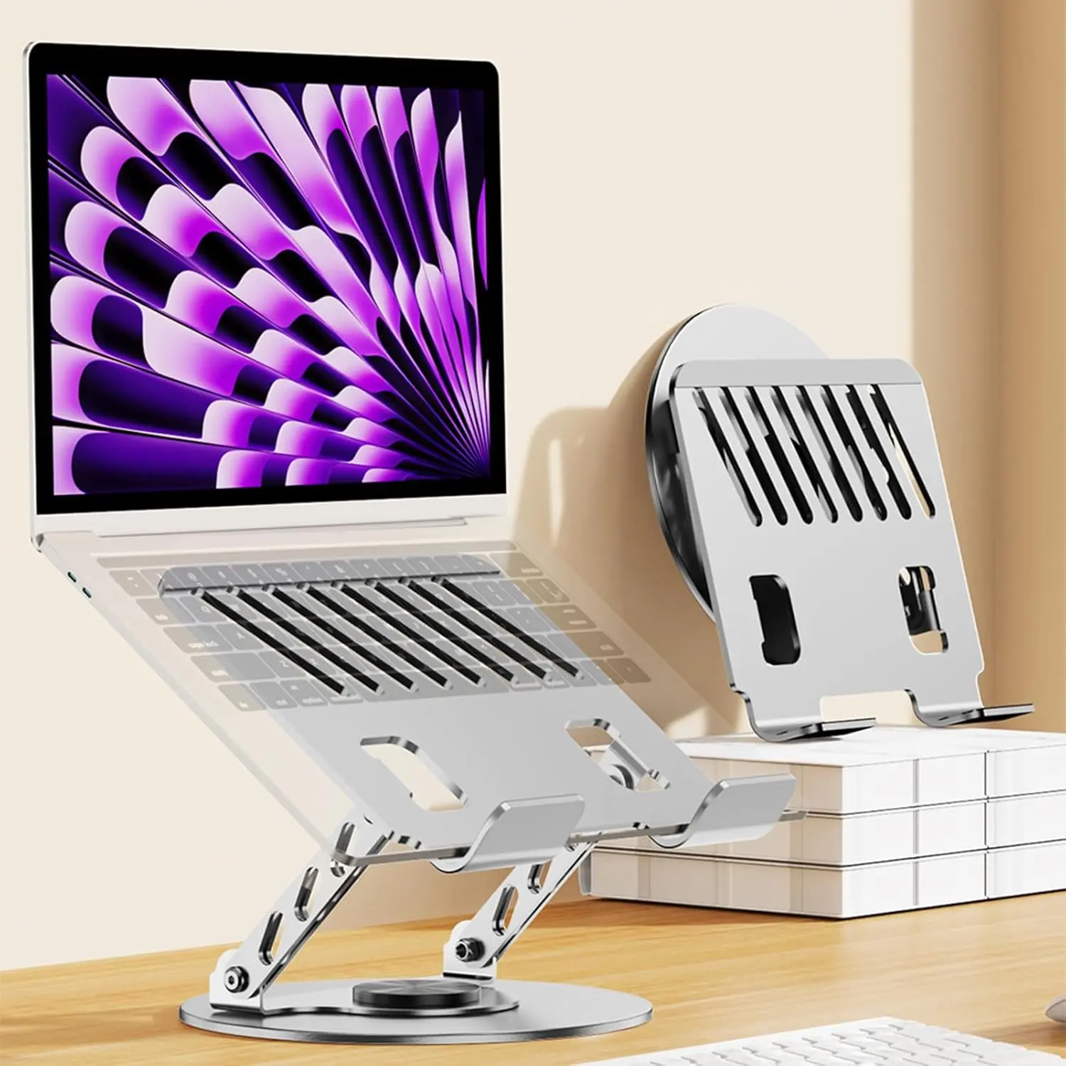 Adjustable Laptop Stand for Desk – Foldable Laptop Riser, 360° Rotatable Ergonomic Laptop Holder for MacBook Air/Pro, Dell, HP 10-17.3”, Multi-Angle Computer Stand with Phone Holder, Portable Cooling Stand for Gaming, Office & Work from Home Setup