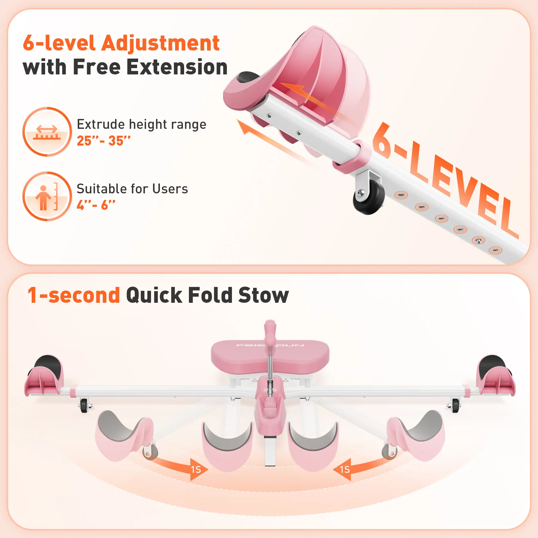 ·Customizable Stretch: With 6 adjustable levels, the stretch can be customized up to 36.2 inches. Suitable for users from 4' to 6' tall, it ensures everyone can achieve the ideal stretch for their needs.