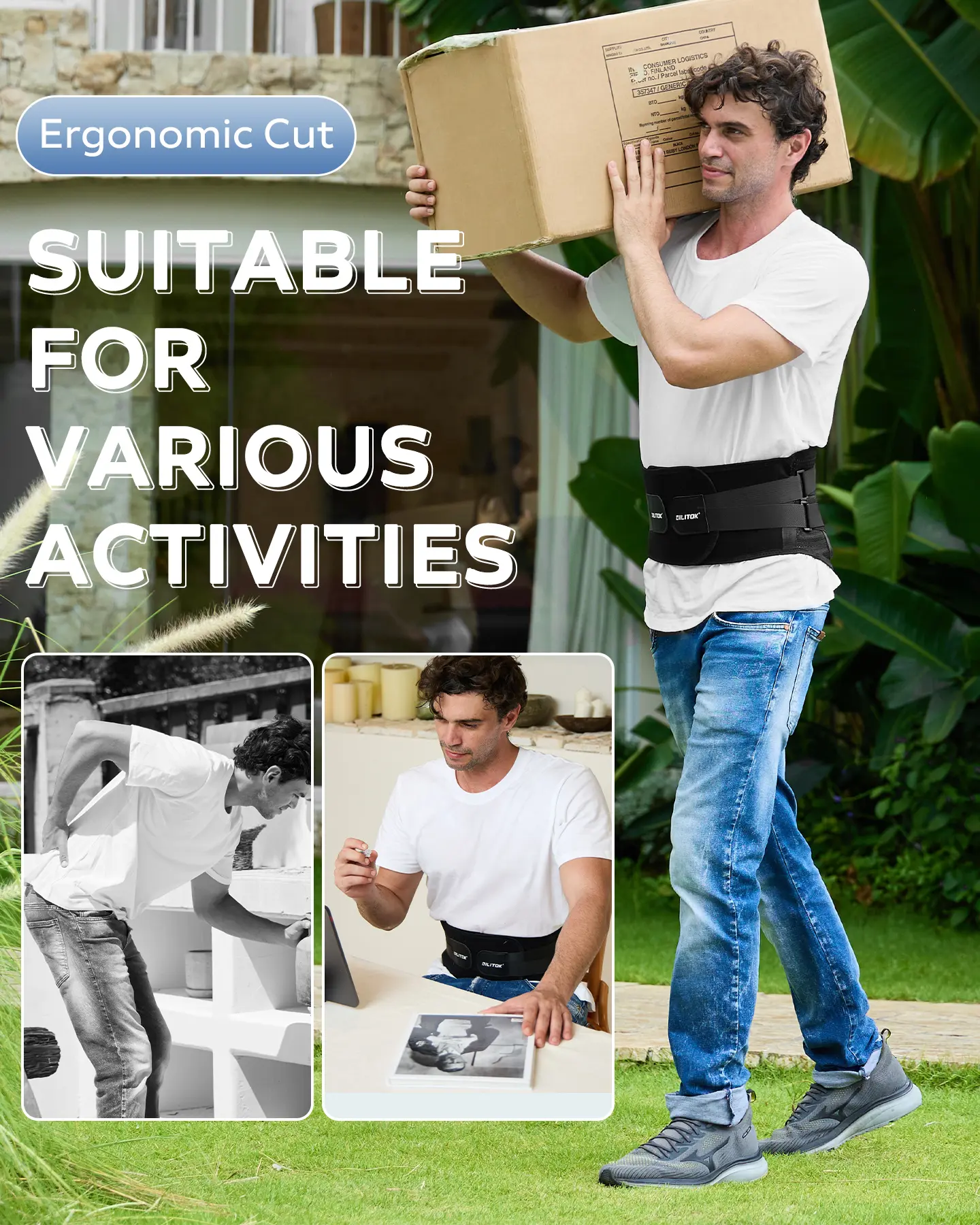 Say goodbye to back pain! Our expertly designed Lumbar Support Belt delivers immediate and lasting relief from muscle aches and discomfort. The sturdy support bars stabilize your back without applying undue pressure, ensuring you receive the support you need. The adjustable waist strap allows for additional compression, enhancing your mobility and enabling you to walk, bend, and stretch with confidence.