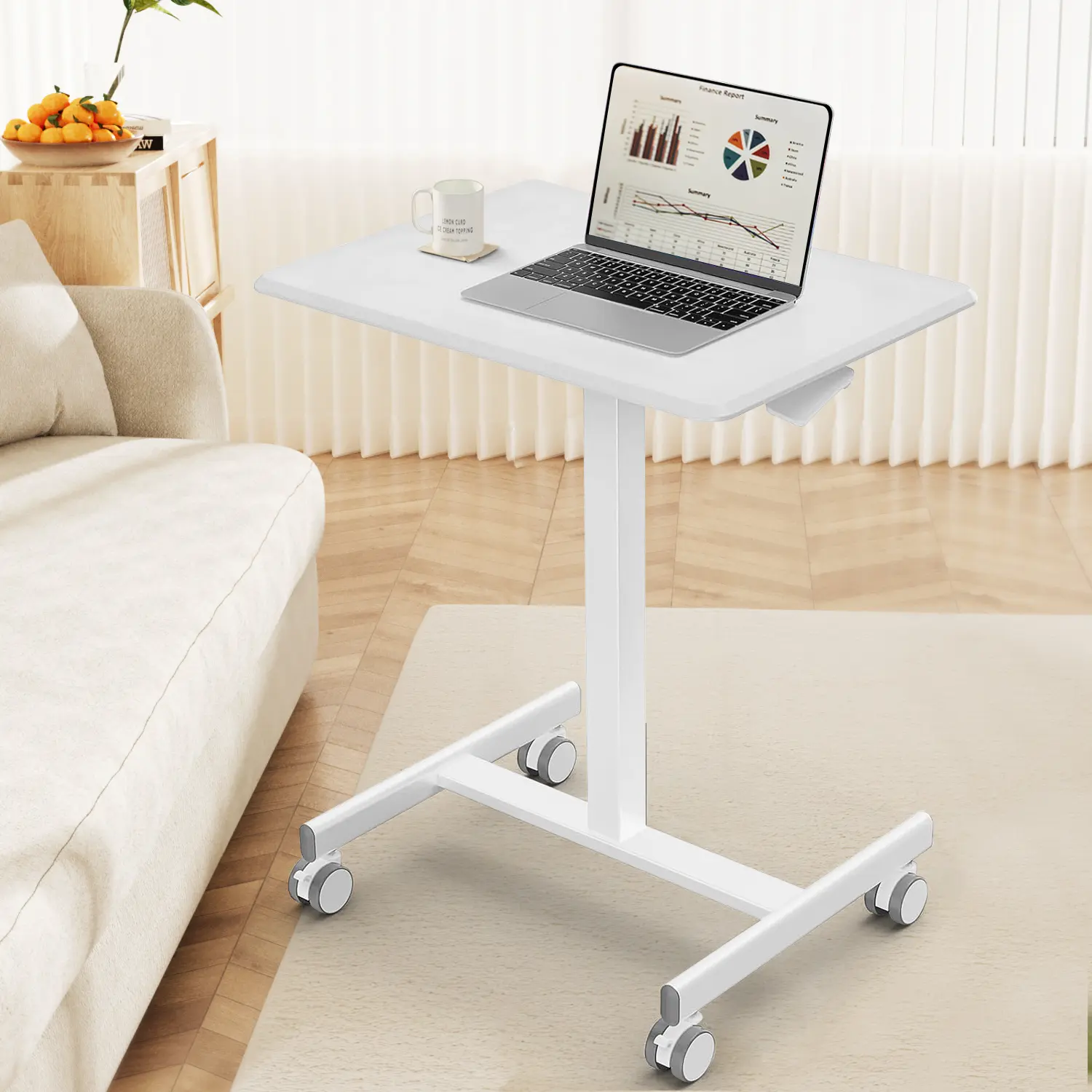 ·【Adjustable Height】The mobile laptop desk's adjustable height feature allows you to find the perfect position for your needs. Whether you prefer to sit or stand, this desk can be adjusted accordingly, providing added comfort and convenience.