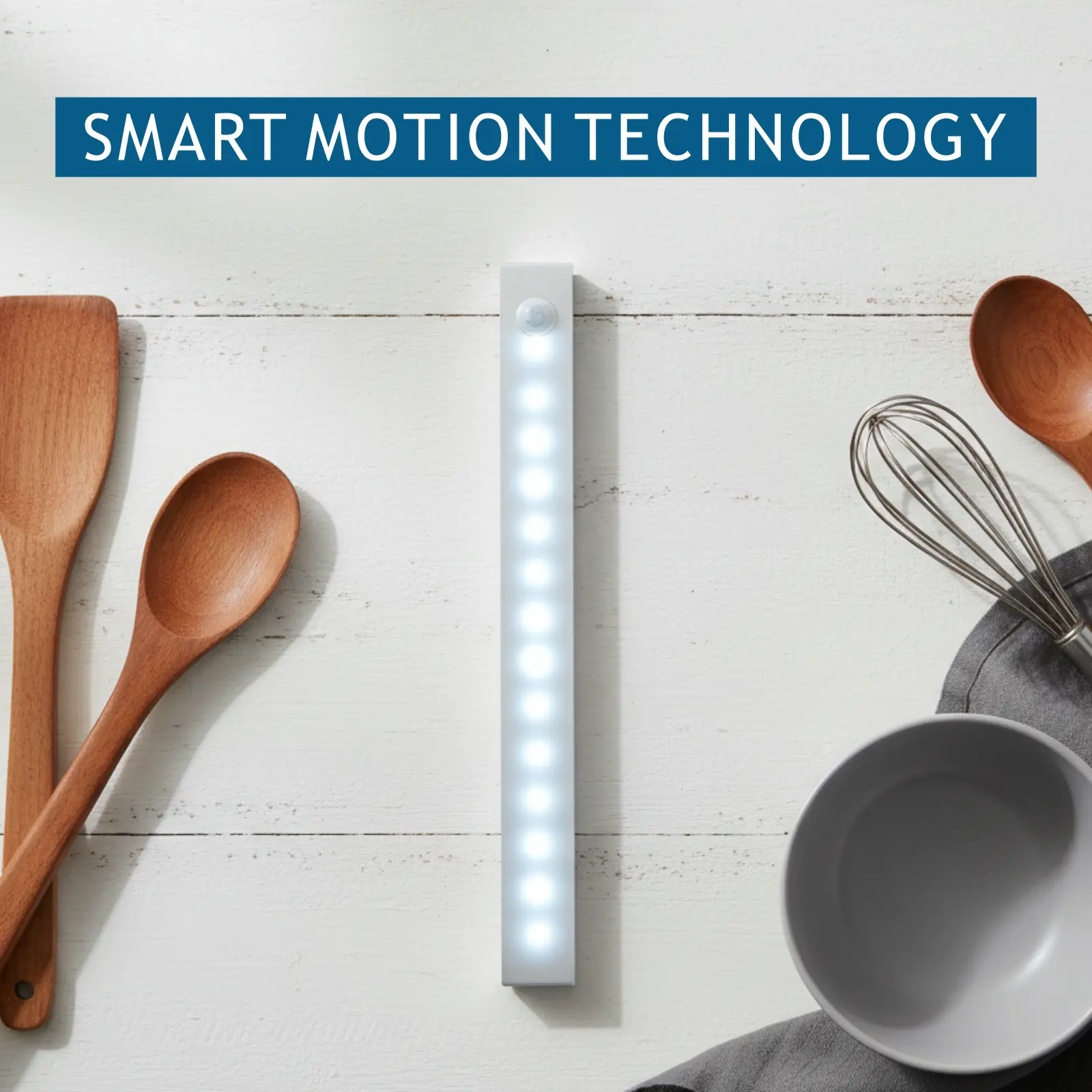 8-inch indoor adjustable motion sensor light for cabinet lighting, USB‑C rechargeable wireless cabinet lighting, countertop lighting for kitchen drawers, wardrobes, and stairs