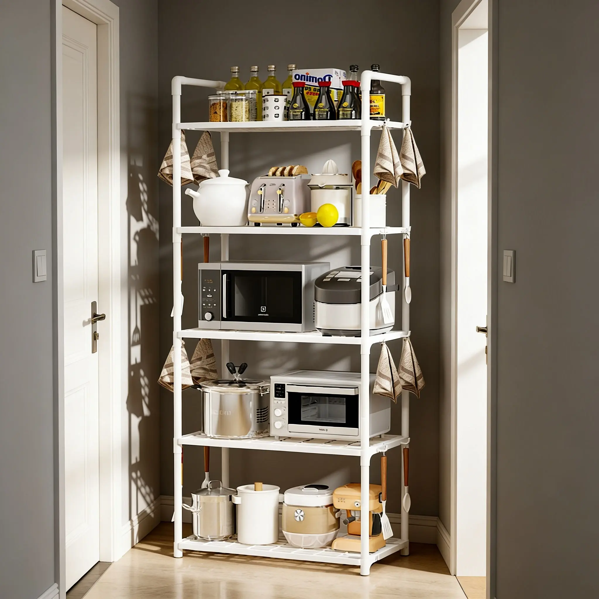 Adjustable Multi-Functional Shelf, Space-Saving Layered Structure, Ideal for Kitchen Bathroom Study Office Home Business