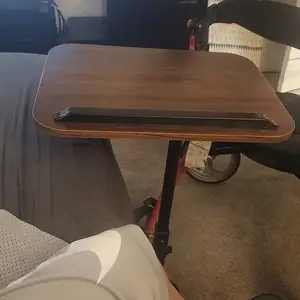 Product comes smaller than what is depicted in the promo photo. It's smaller and barely fits over my bed. I can't put my legs underneath if trying to use it while sitting up in bed. Top of the table is extremely slick, one mistake of a bump and everything goes flying. Pic below is fully extended