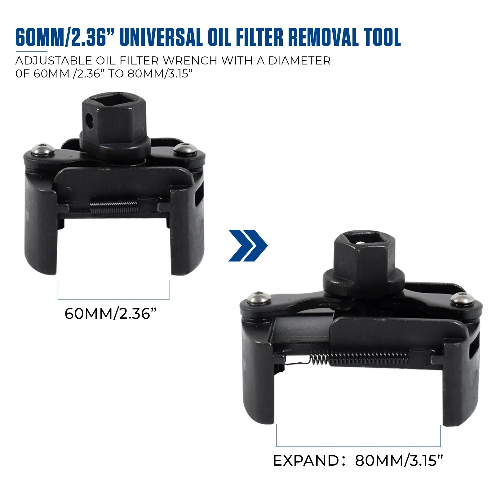 🔧 ADJUSTABLE SIZE: The wrench adjusts from 60mm to 80mm, fitting a 1/2 connector. It makes oil changing faster and more routine. Follow the video for usage.