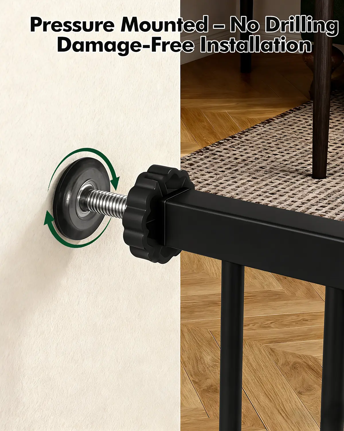 ·Quick & Easy Setup, No Tools Required Pressure-mounted design means no drilling or damage to your walls. Set up in minutes—simply adjust the width, and you’re ready to go, ensuring a hassle-free installation experience.