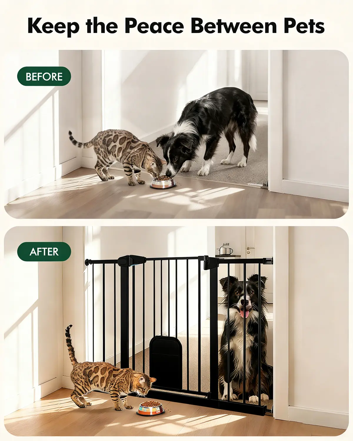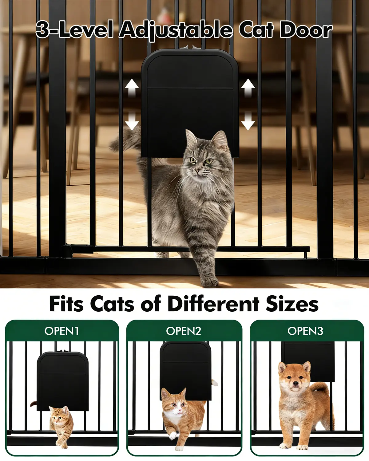 ·Convenient Built-In Pet Door for Cats Features a small built-in pet door that allows your cat to come and go as they please, while keeping your larger pets safely separated. This simple solution helps maintain peace and order at home, ideal for multi-pet households.