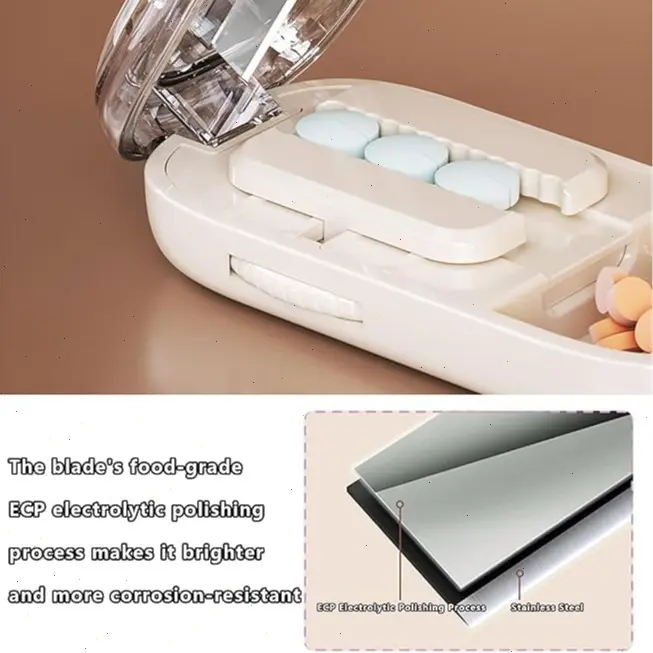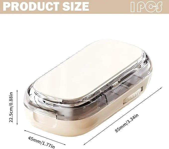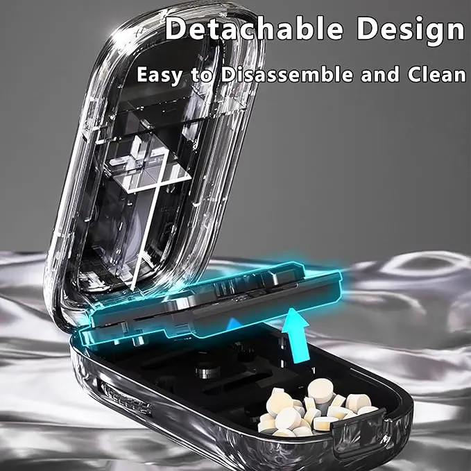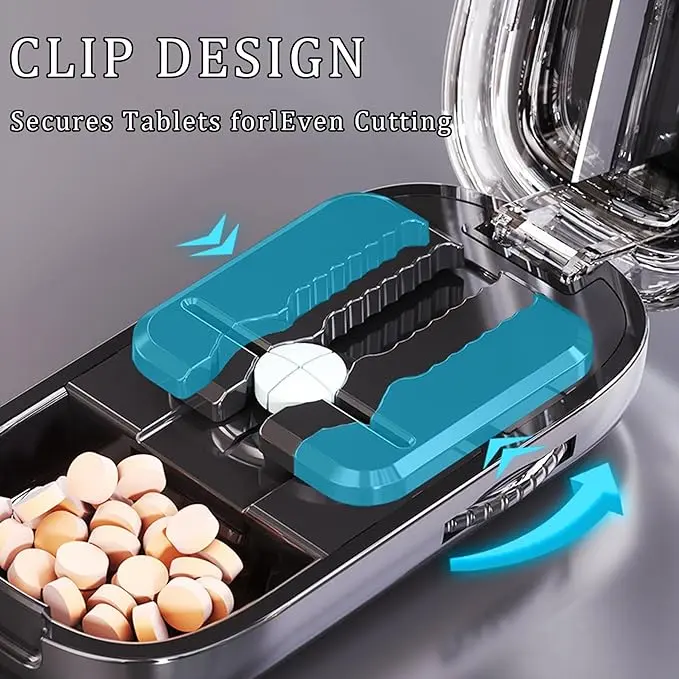 ·【Compact and Travel-Friendly】Featuring a built-in storage compartment, this multifunctional pill cutter also serves as a convenient organizer. Lightweight and portable (3.3 × 1.8 × 0.9 inches), it fits easily into your bag, making medication management simple at home or on the go