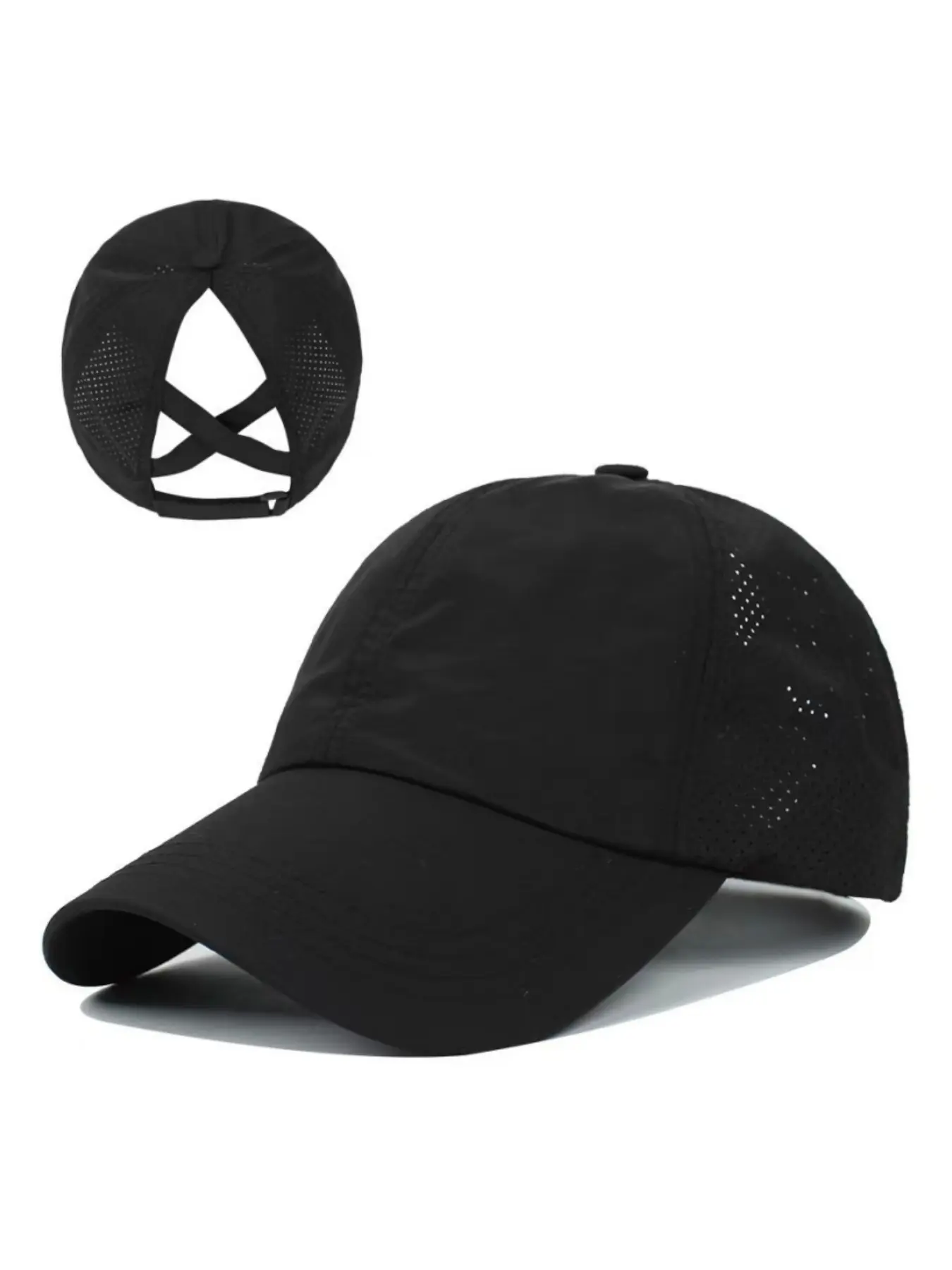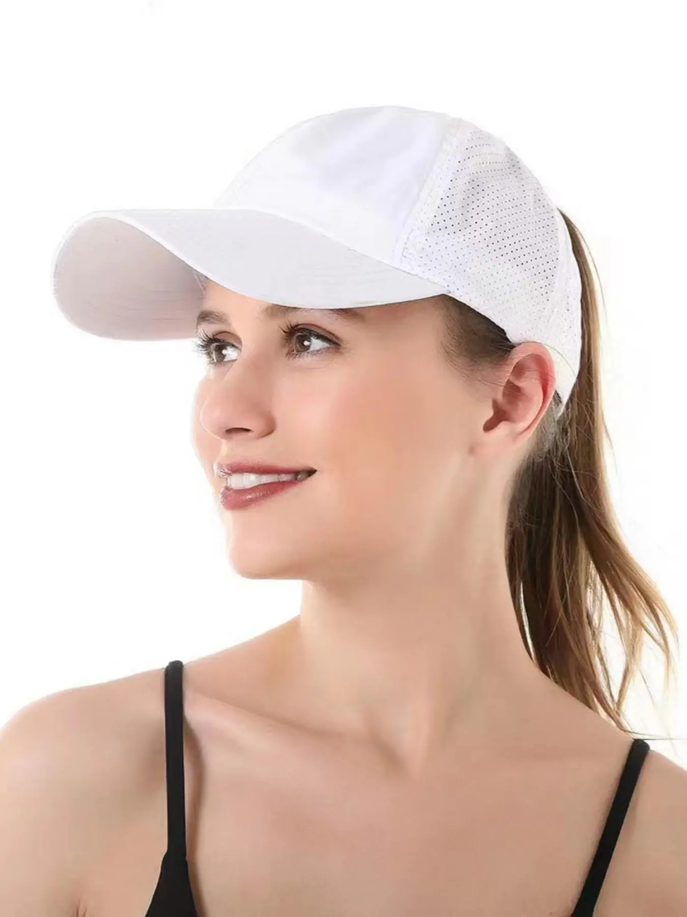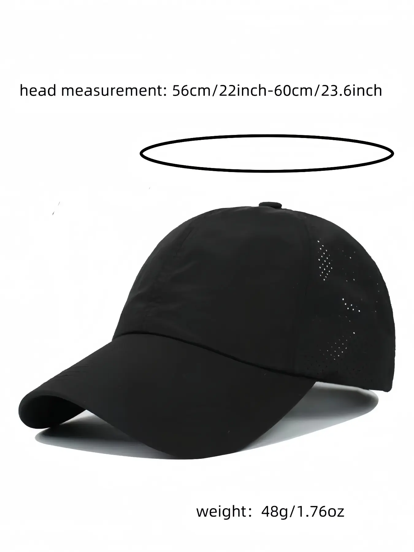 1pcs Quick-Dry Solid Color Baseball Cap, Adjustable Ponytail Holder, Essential Outdoor Fitness Sports Hat, Casual Fitted Style, Adjustable Snapback Cap