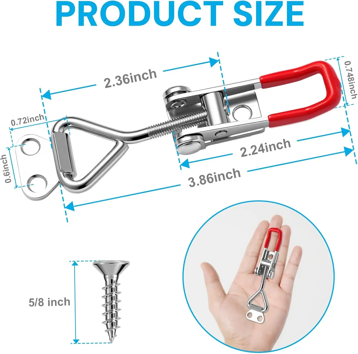 ·Value Pack: The Toggle Latch Includes 6 adjustable toggle latch clamps + 24 mounting screws(5/8Inch). All screws are suitable for heavy-duty lock installation and are available in sufficient quantity for use in multiple projects or to replace old and worn parts.