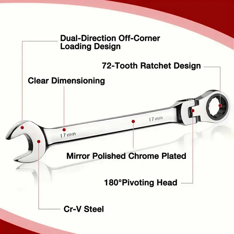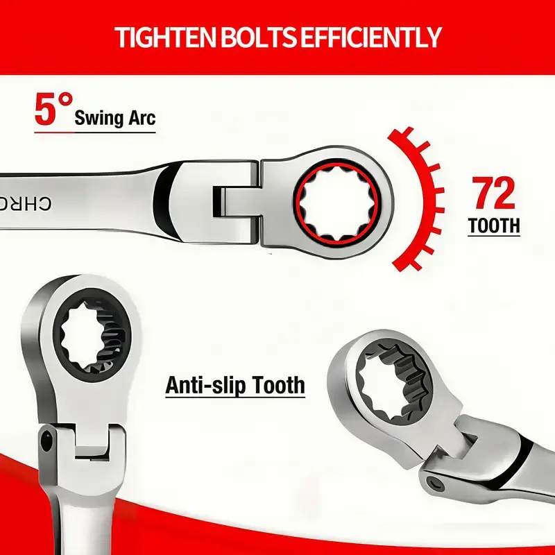 ·180-Degree Flex Head Design: The wrenches feature a flexible head, enhancing versatility and ease of use. 🔄
