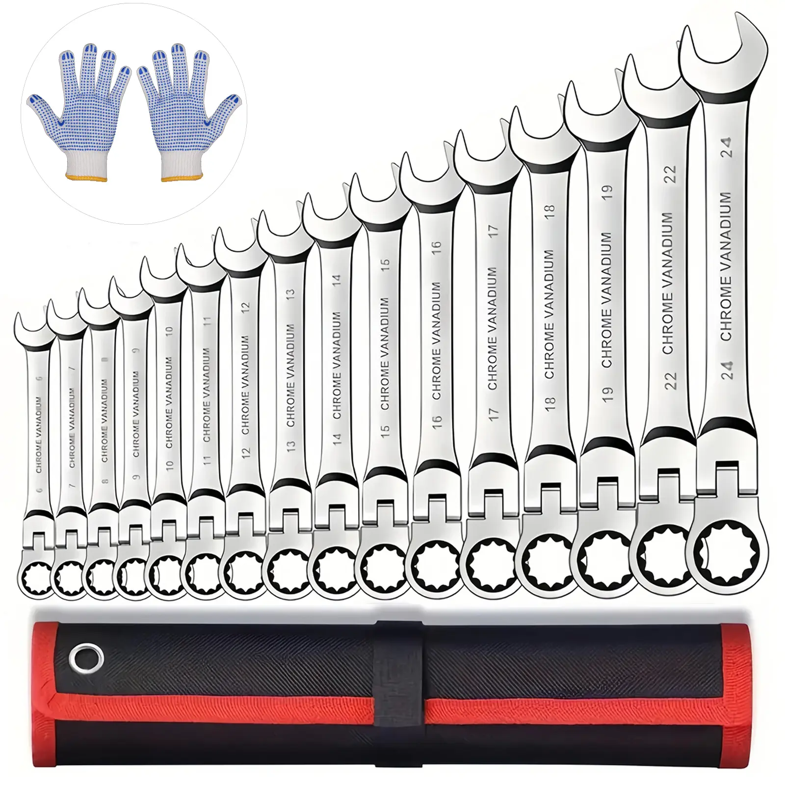 ·16PCS Set: This high-grade CR-V structure wrench set includes 16 pieces. Perfect for various manual tasks. 📏