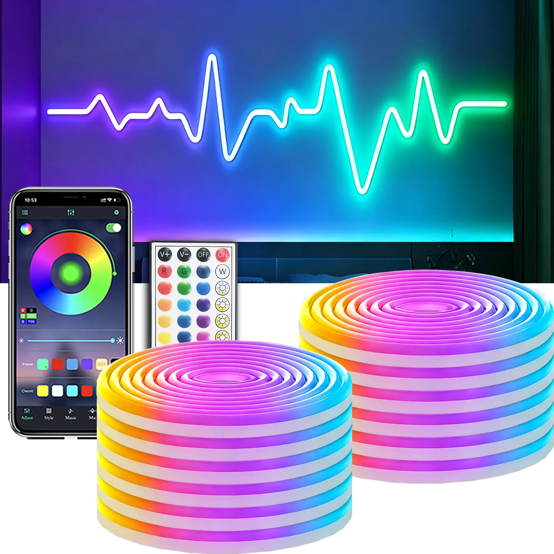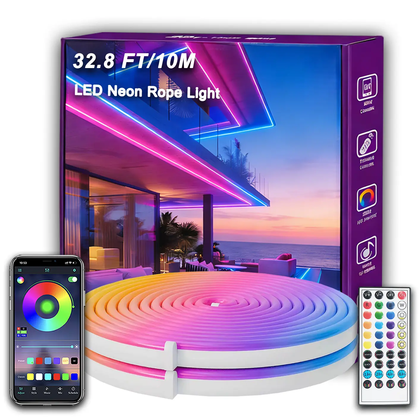 FLEXIBLE AND WATERPROOF: Compared with ordinary LED strip lights, this neon LED strip light is more flexible and can be easily bent into any shape to meet the needs of various DIY designs, it can easily decorate the bedroom, living room, kitchen, etc. The IP67 waterproof material can support the outdoor use (Note: the controller is not waterproof)