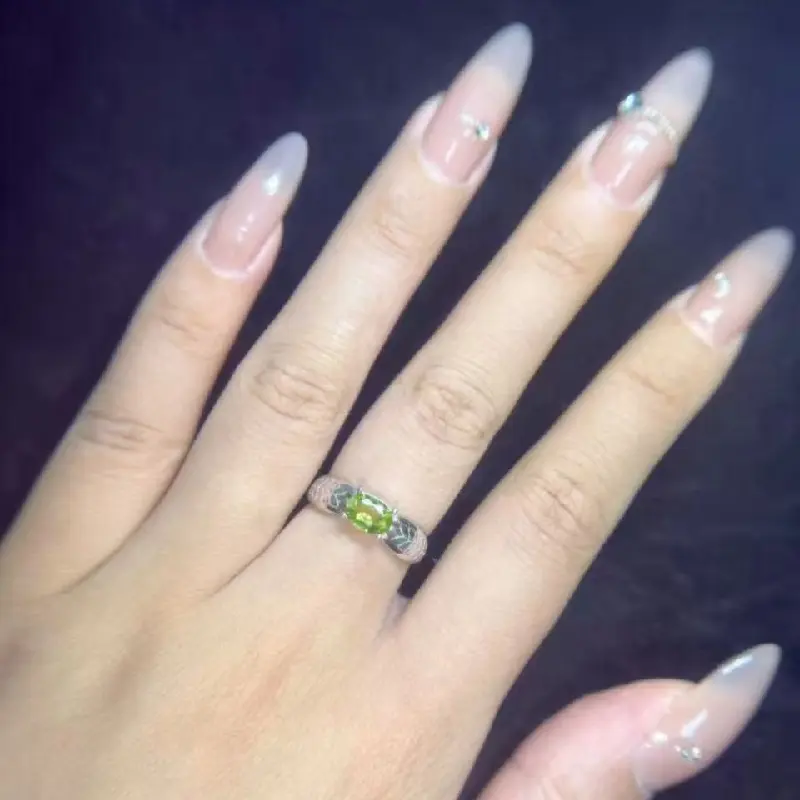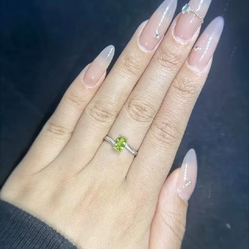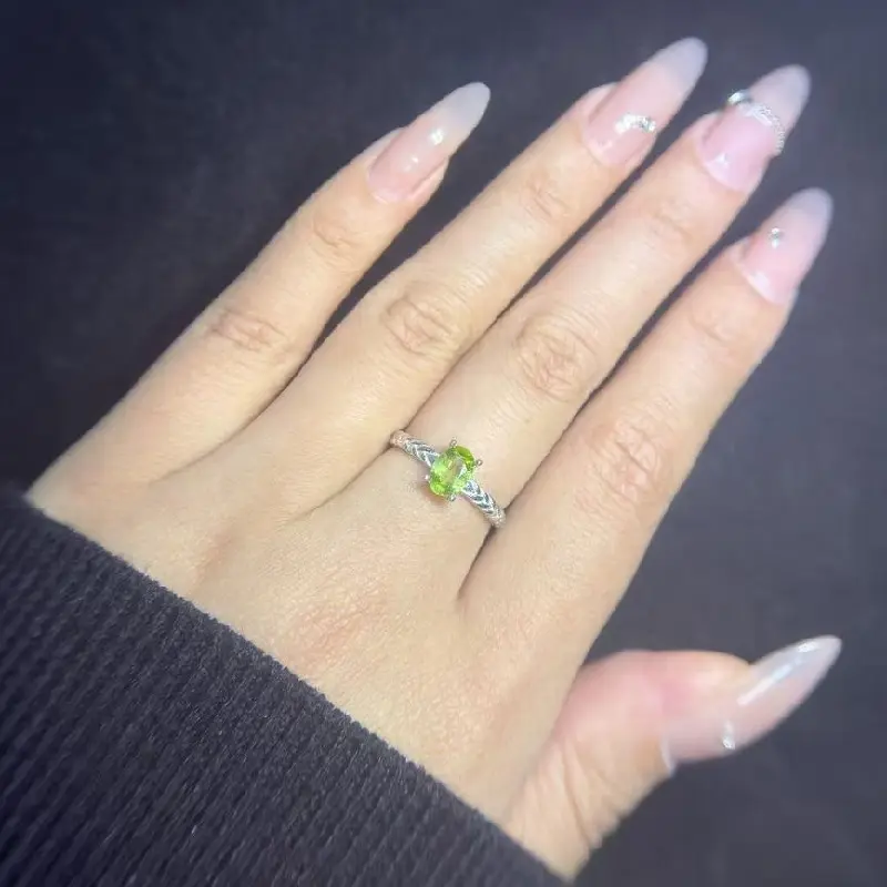 #68 E3 (August) 925 Sterling Silver Natural Gemstone Adjustable Ring Gifts for Women Peridot Aug.
