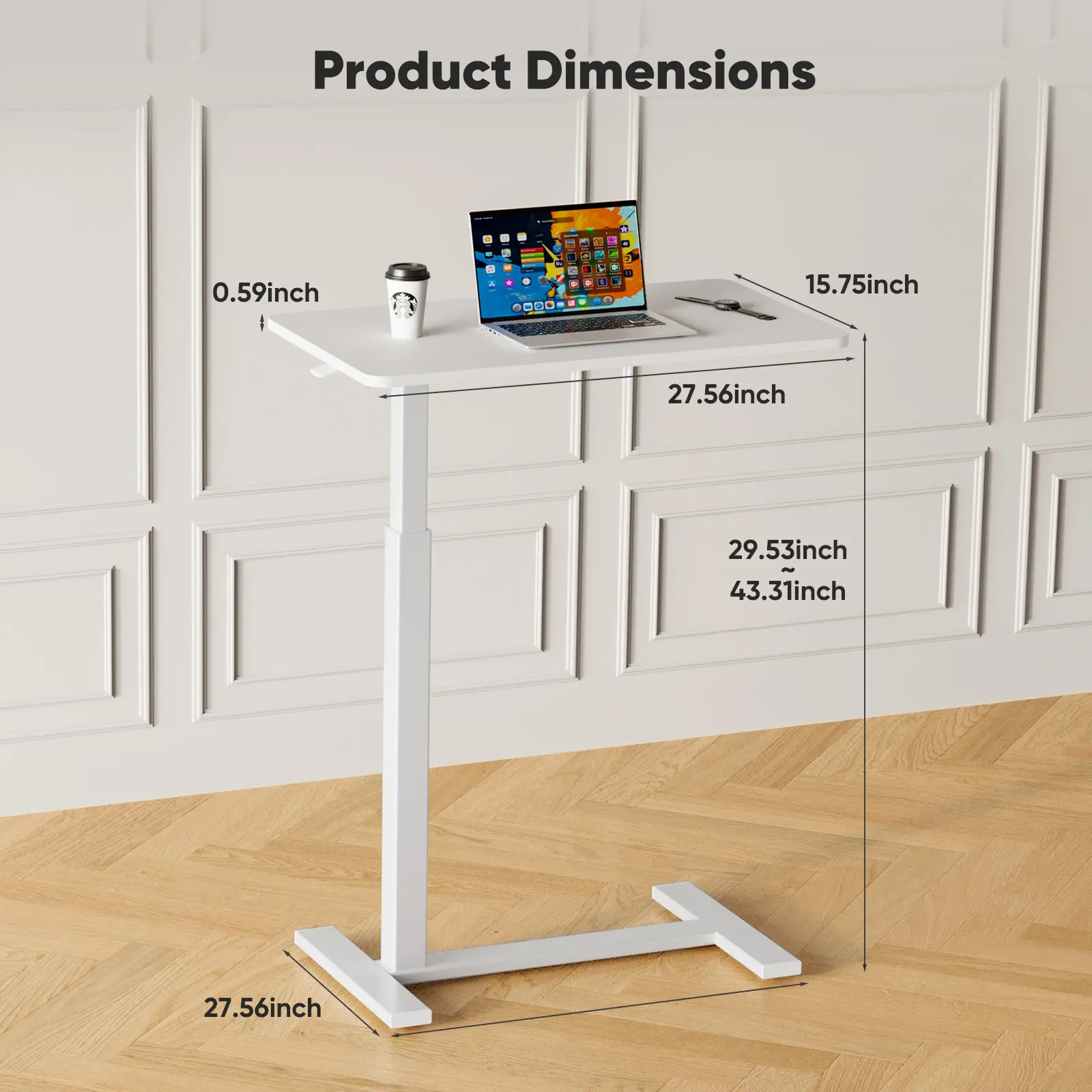 ·【Height Adjustable】 When you press the handle on the side of the table, the height of this mobile standing table on wheels changes from 28.5 inches to 42.5 inches in seconds.The lift is fast and smooth, which is a great solution to your sedentary lifestyle and allows you to enjoy the health benefits of a small standing table.