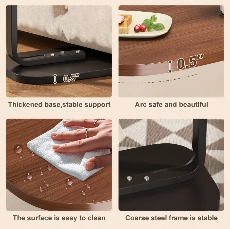 ·3,Adjustable Sofa Table:Easy to Assemble: Assembly is simple and worry-free. The C shaped drink table has a simple structure. After receiving the package, you only need to follow the steps to connect the tabletop and the frame together