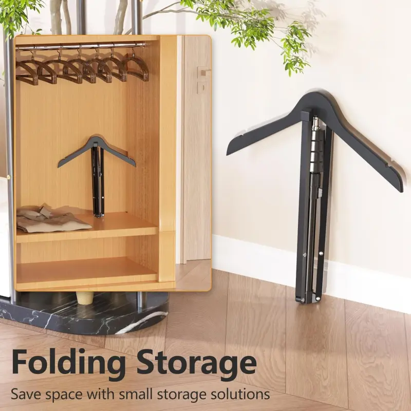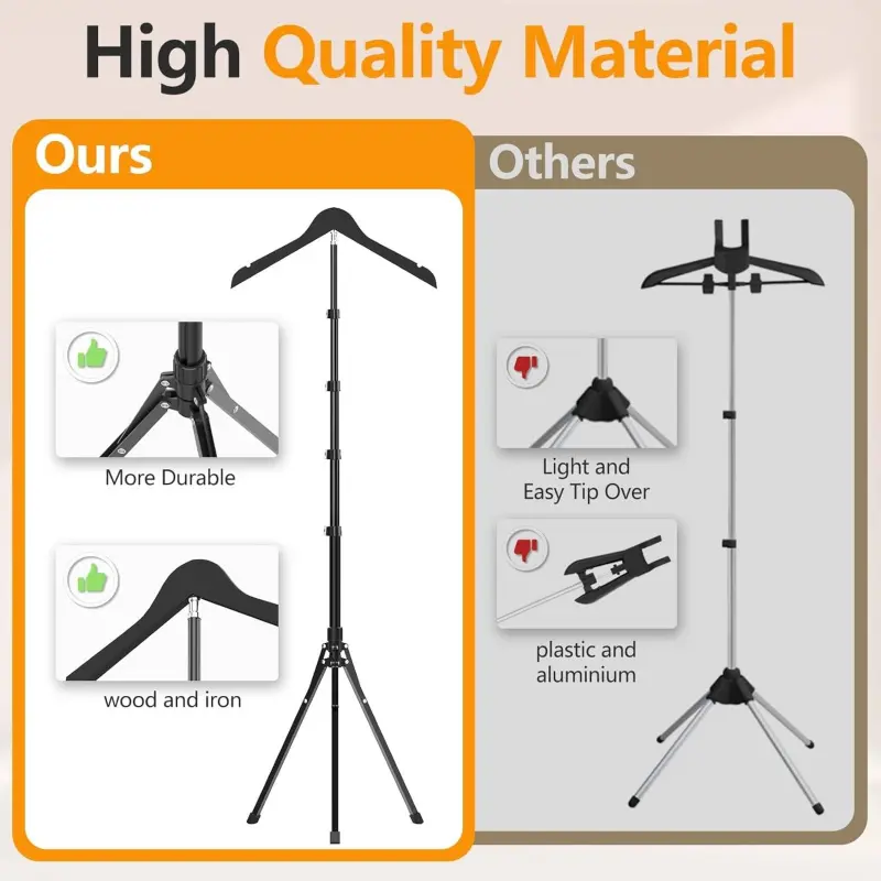 Premium Dual-Material Design: Our clothing display stand combines upper solid wooden hanger with lower sturdy metal tripod, ensuring both elegance and durability. The wooden hanger’s polished surface prevents fabric snags or deformation, while the steel structure has a sturdy structure that can bear heavy loads and has excellent load-bearing performance. It will not bend or tip over during use. Weighted Stable Base: Features a 3-leg triangle heavy base, more stable than traditional 4-leg racks, as the triangle structure distributes weight evenly. It prevents tipping even when hanging bulky winter coats, thick sweaters, or multiple dresses. With a 30LB load-bearing capacity, it keeps garments from sagging, maintaining a neat display look. Freely Adjustable Height: Boasting a flexible telescopic structure, this T-shirt display stand lets you freely adjust its height between 32 inches and 63 inches. From short T-shirts to long coats, it adapts effortlessly to different garment lengths, no more hassle of mismatched display heights, perfectly meeting all your diverse showcasing needs. Rotatable Folding Design: The wooden hanger rotates 360 ° smoothly, allowing customers to view clothes from every angle (great for store browsing) or helping you check garment fits at home. When not in use, it folds down to a compact 16 inches, easily stowed in wardrobes, under counters, or even travel backpacks. Ideal for market vendors, mobile pop-ups, or renters who need space-saving storage. Versatile Use: This mannequin stand is perfect for any occasion, from showcasing products in retail stores and trade shows to displaying creations at art exhibits and graduation parties. It's also a great fit for home use, functioning as both a clothes rack and even a steamer rack. This is the ultimate display solution for any business owner, market vendor, or passionate collector.
